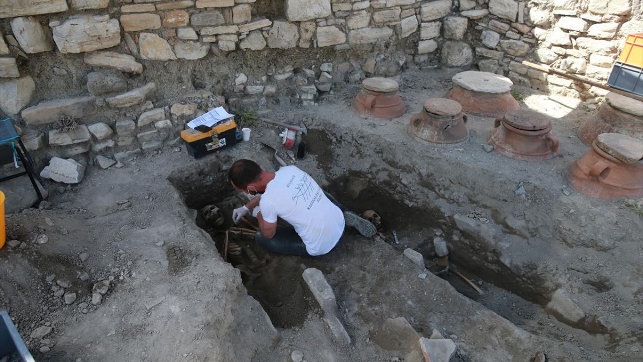 "Bulunan 5 mezardaki iskeletlerin duruş ve gömülüşün tarzına bakıldığına Hristiyan dinine mensup insanlar olduğunu belirledik. Mezarlarla ilgili antropolojik çalışma devam ediyor. 13. yüzyılda kilisenin terkiyle birlikte burada çok sayıda gömü olduğunu düşünüyoruz. 14. yüzyıldan 20. yüzyıla kadar bir yaşam hüküm görmediği için mezarları bozulmadan görebiliyoruz. Bu yıl bulduğumuz iskeletlerin tamamı sağlam bir şekilde ortaya çıktı."