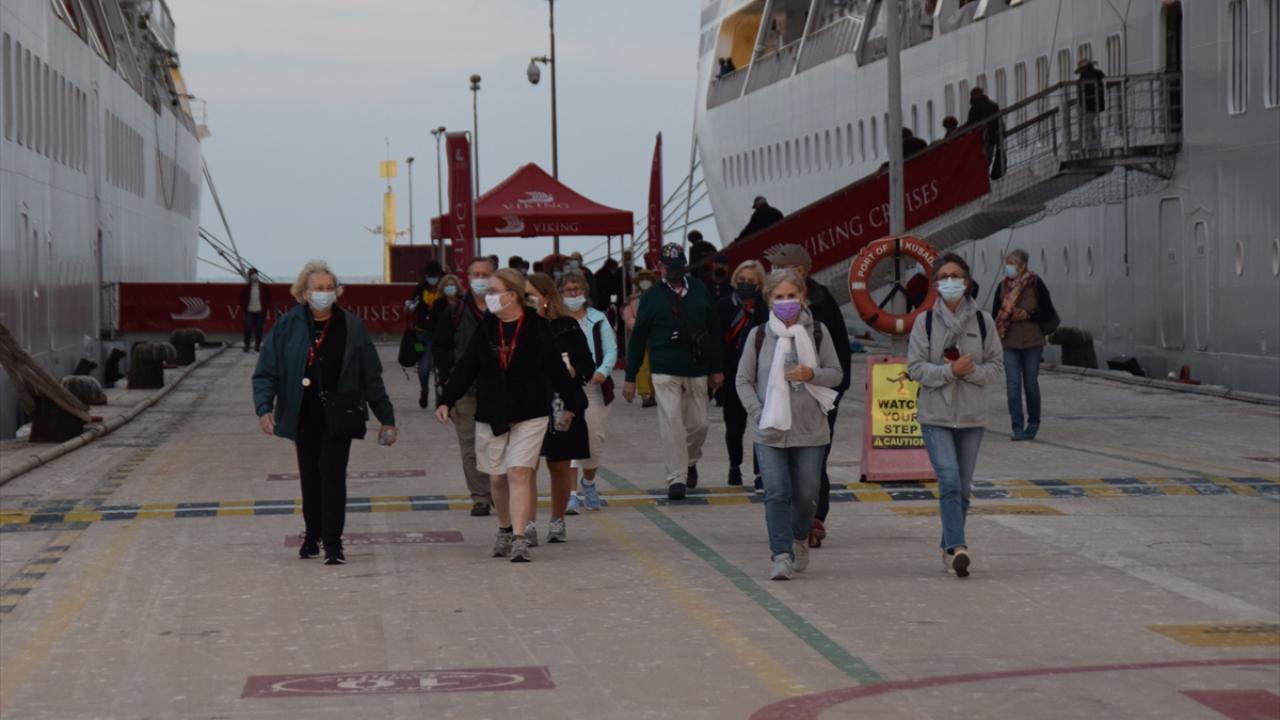 Aydın'ın Kuşadası ilçesine Norveç bandıralı iki kruvaziyerle 1200 turist geldi.