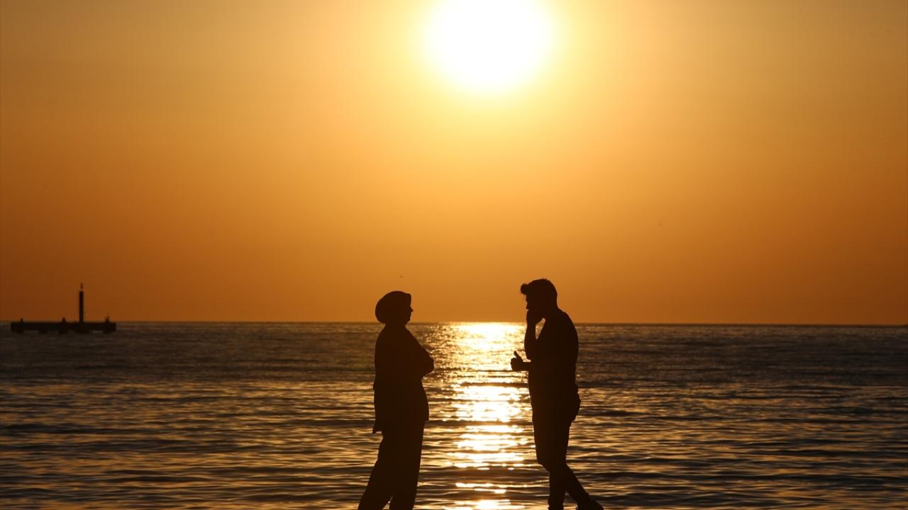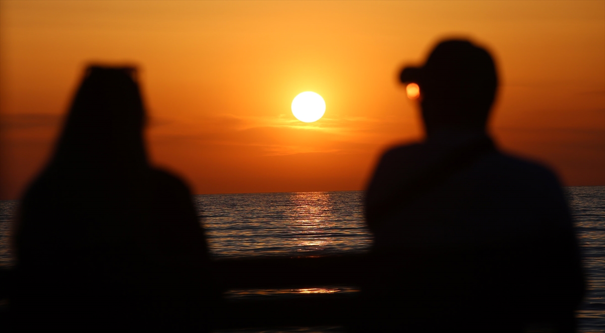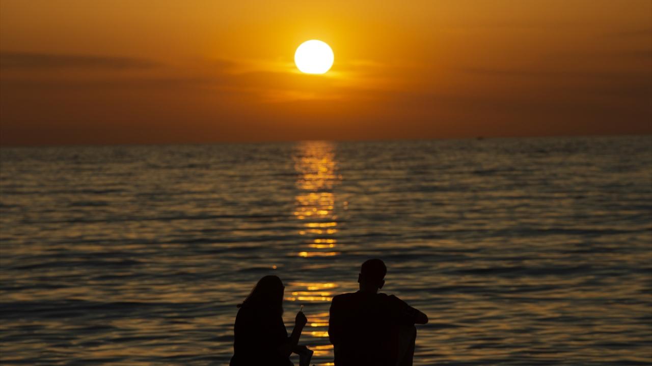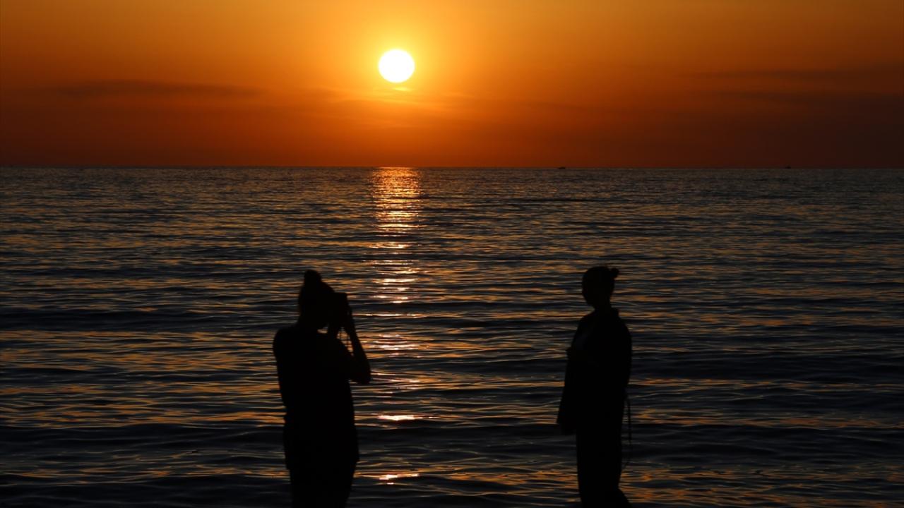 Ege Bölgesi'nin önemli turizm merkezlerinden Aydın'ın Kuşadası ilçesinde gün batımı saatlerinde oluşan kızıllık güzel görüntüler oluşturdu.
