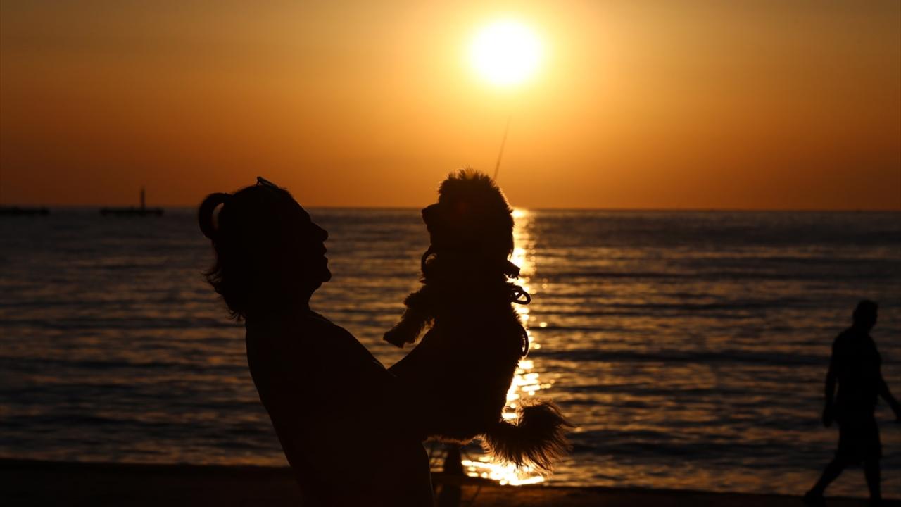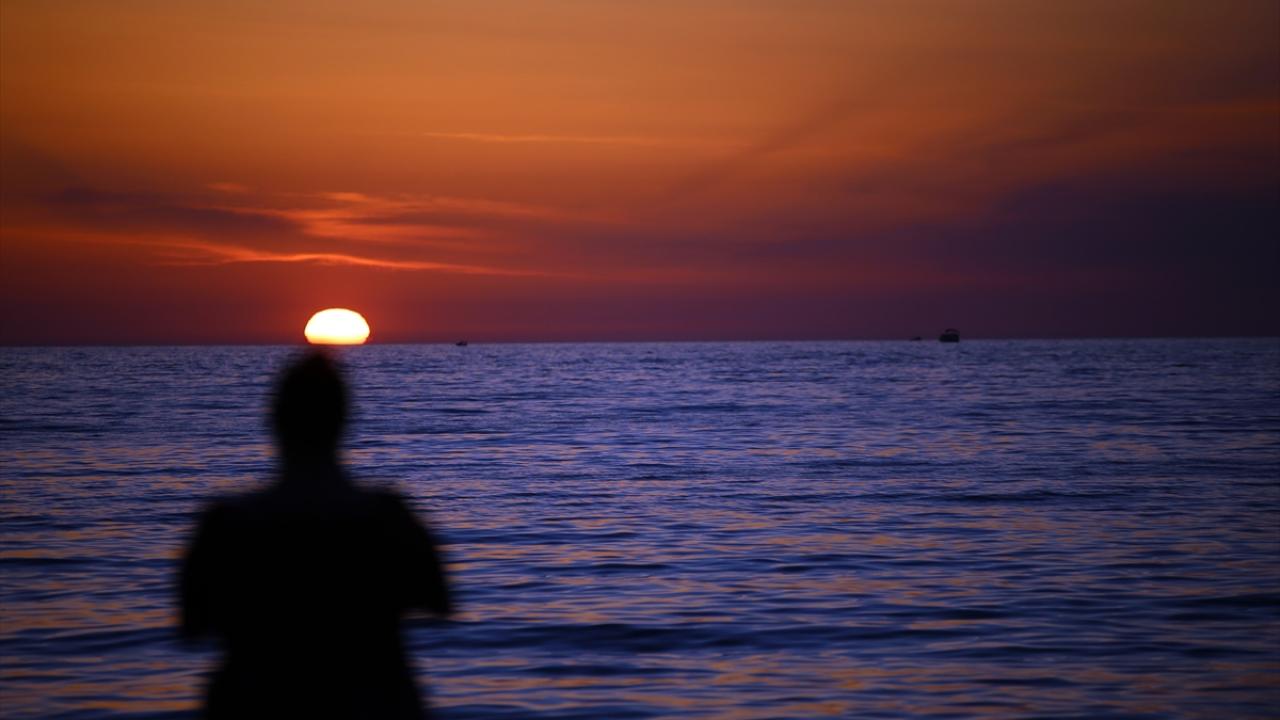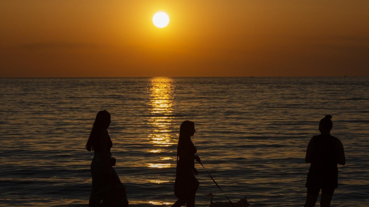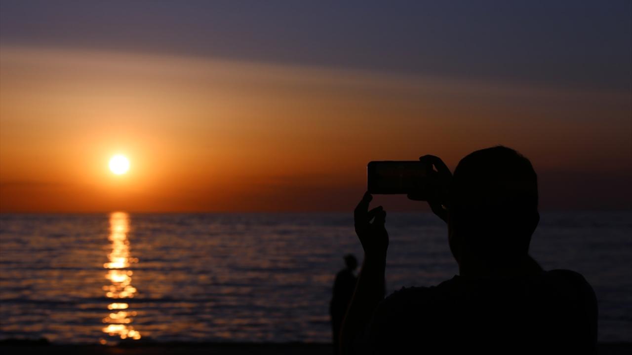 Ege Bölgesi'nin önemli turizm merkezlerinden Aydın'ın Kuşadası ilçesinde gün batımı saatlerinde oluşan kızıllık güzel görüntüler oluşturdu.