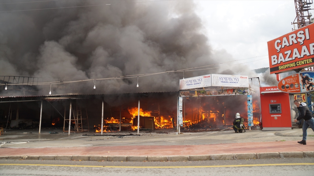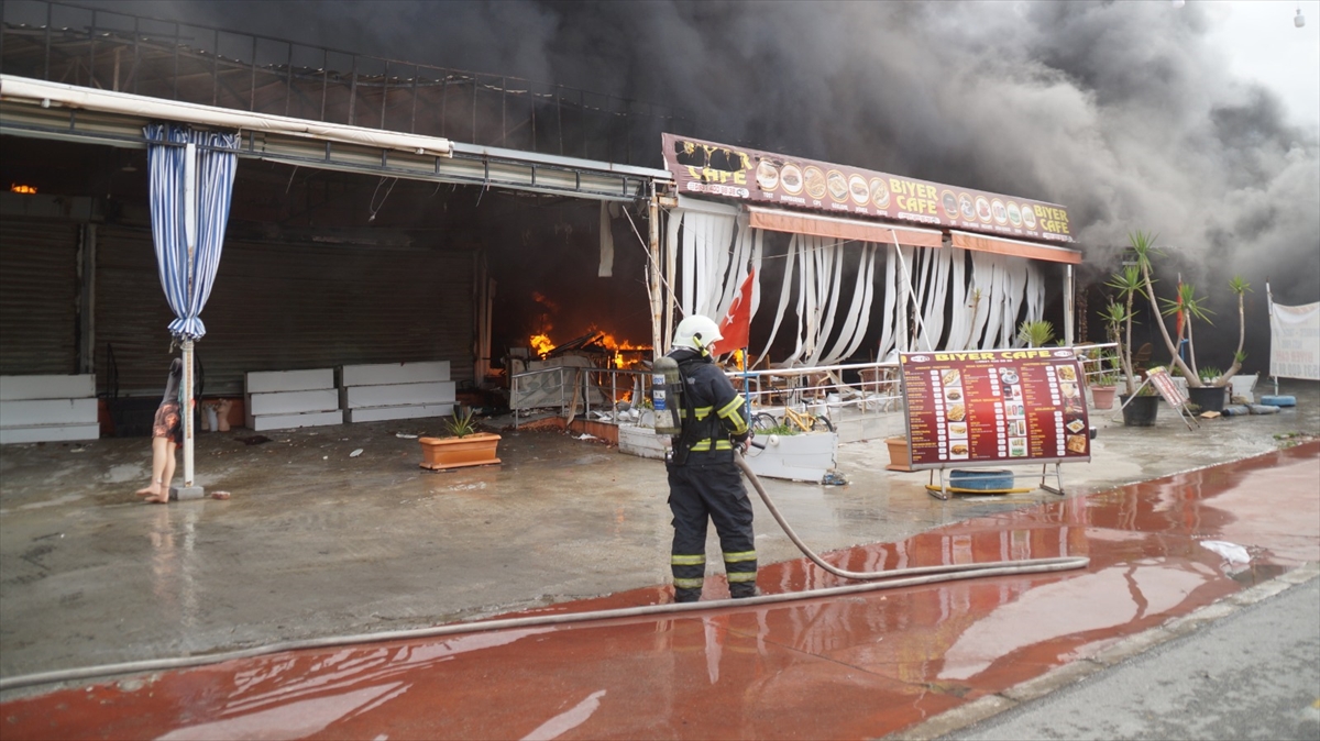 Kuşadası'ndaki yangında iş yerleri hasar gördü