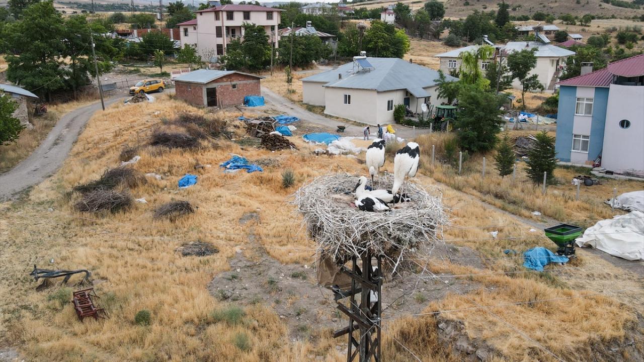 Ağaç dalları kullanarak oluşturdukları yuvalarda kuluçkaya yatan leyleklerin, bir ay önce yumurtadan çıkan ve bugünlerde uçmayı öğrenmeye başlayan yavrularıyla da köydeki popülasyonları arttı.