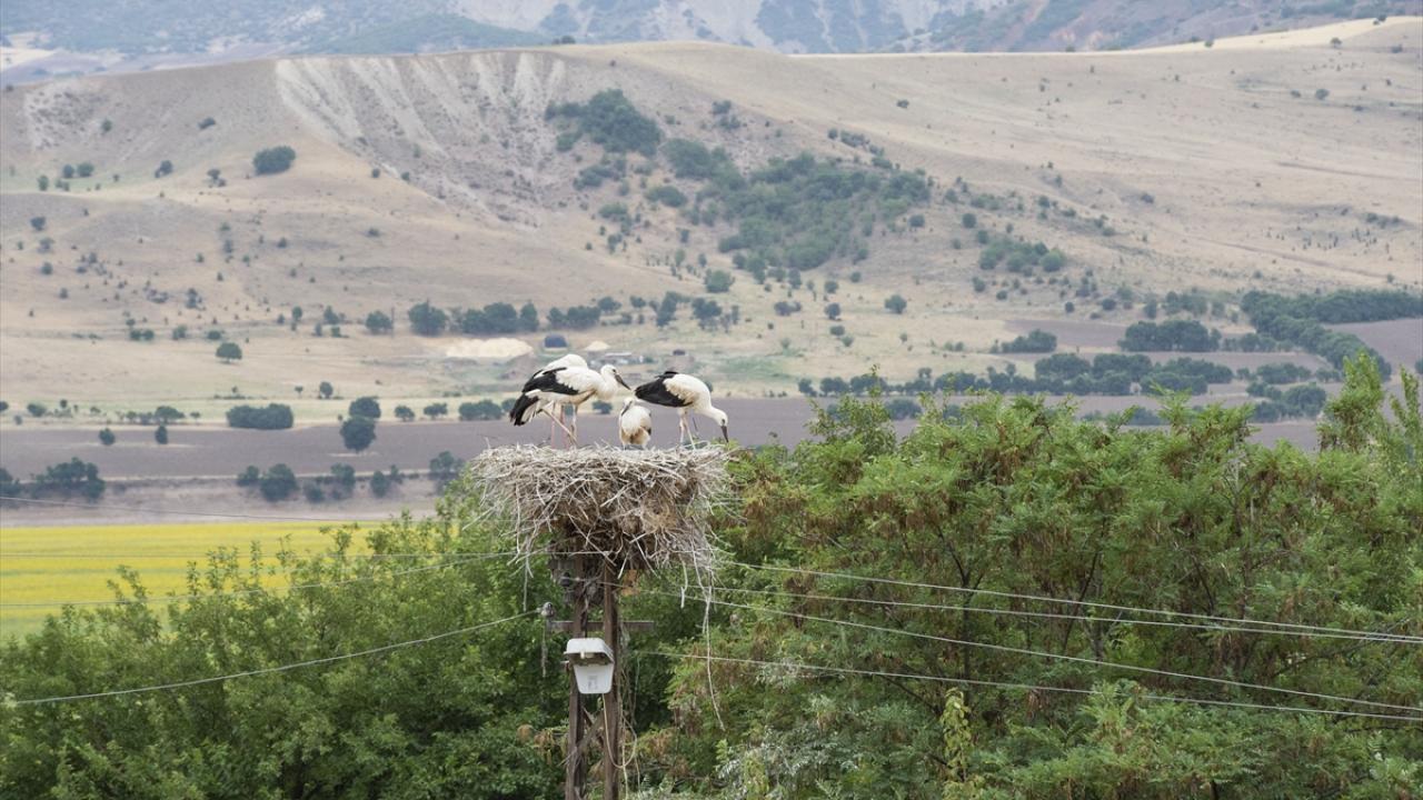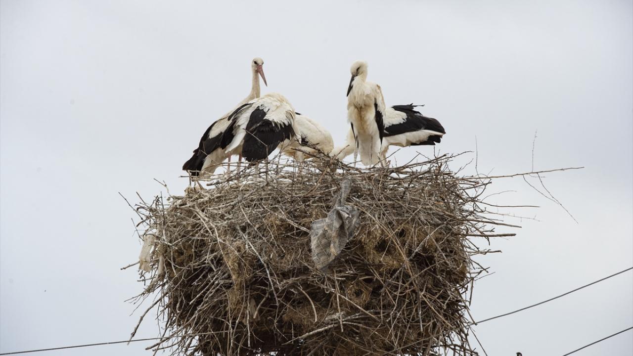 İlçeye bağlı 14 haneli Kuşçu köyünü de mart ayından bu yana mesken tutan leylekler, buradaki ev ve elektrik direklerine yaptıkları yuvalarda yaşamlarını sürdürüyor.
