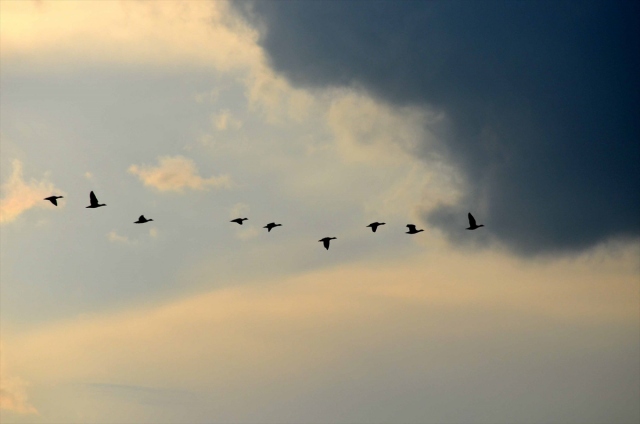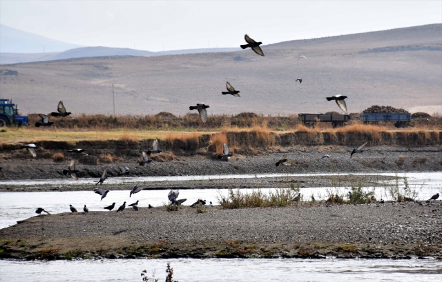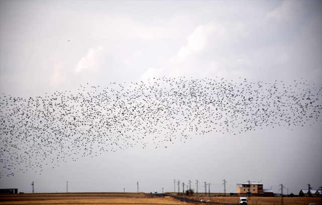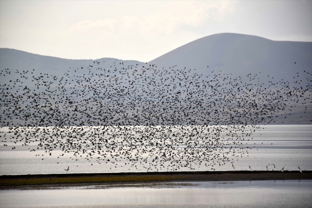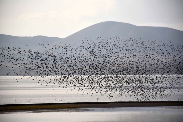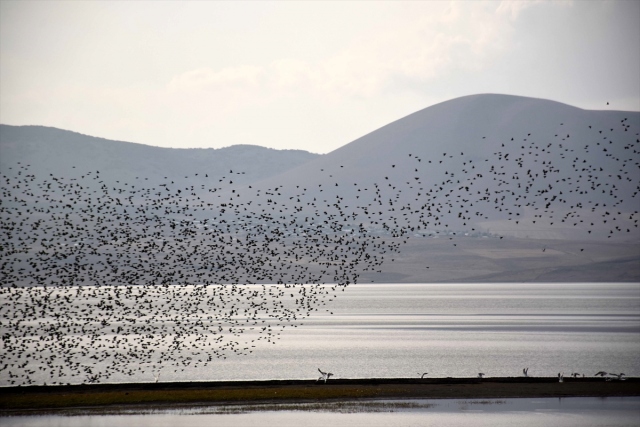 Sulak alanları ve zengin florasıyla çok sayıda kuş türüne ev sahipliği yapan Muş Ovası'nda, havaların soğumaya başlamasıyla kuşların sıcak bölgelere göçü renkli görüntüler oluşturuyor.