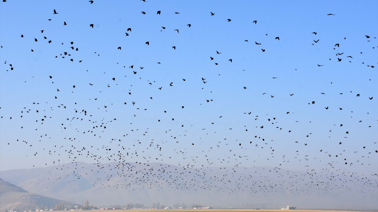 Sulak alanları ve zengin florasıyla çok sayıda kuş türüne ev sahipliği yapan Muş Ovası'nda, havaların soğumaya başlamasıyla kuşların sıcak bölgelere göçü devam etti.