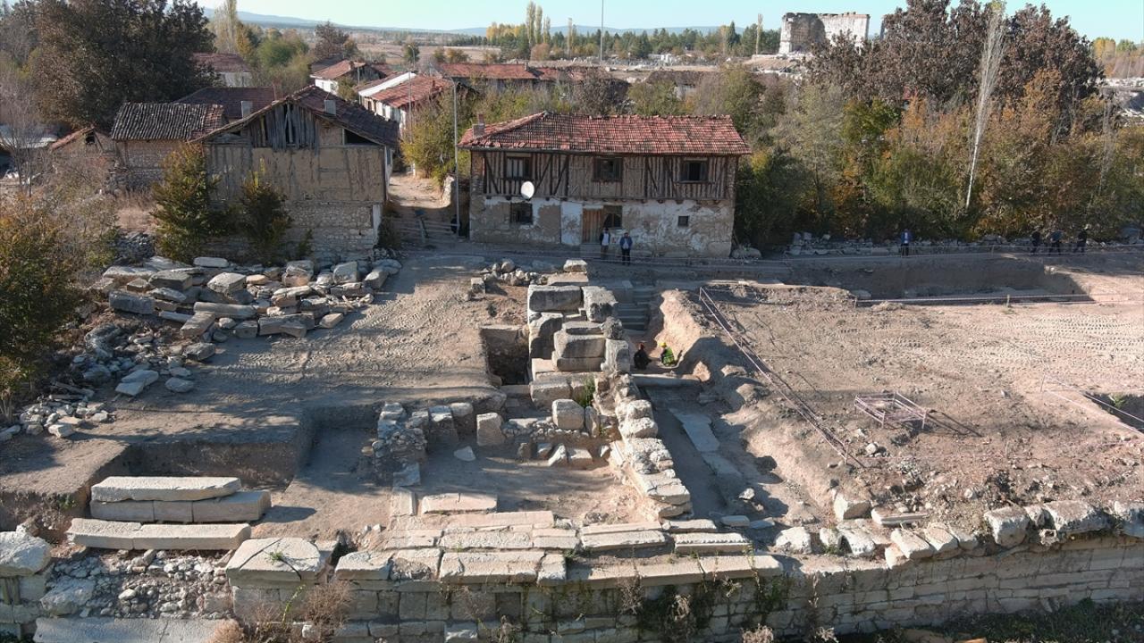 Kütahya'nın Çavdarhisar ilçesindeki arkeolojik kazıda, Aizanoi Antik Kenti'ne girişi sağlayan anıtsal kapı yapısı ile 2 bin yıl öncesine ait pişmiş topraktan yapılmış tiyatro maskı bulundu.