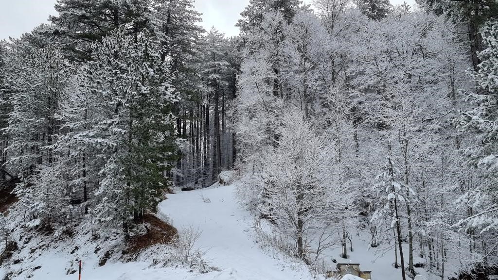 Kütahya'nın Domaniç Dağı'nda sabah saatlerinde başlayan kar yağışı, aralıklarla devam ediyor.