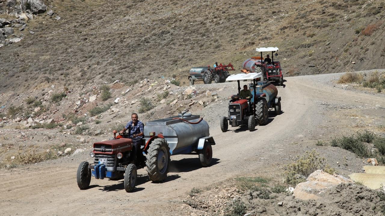 Ankara'nın Çubuk ilçesine bağlı Akkuzulu Mahallesi'ndeki çiftçiler, bu yıl etkili olan kuraklık nedeniyle tarlalarını tankerlerle su taşıyarak suluyor.