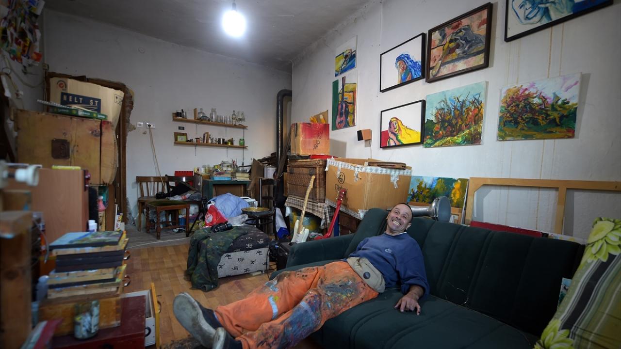 Toma Dimovski, Üsküp`teki atölyesinde çalışmalarına devam ediyor.