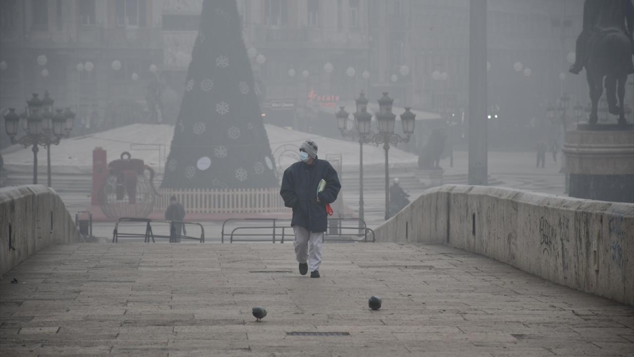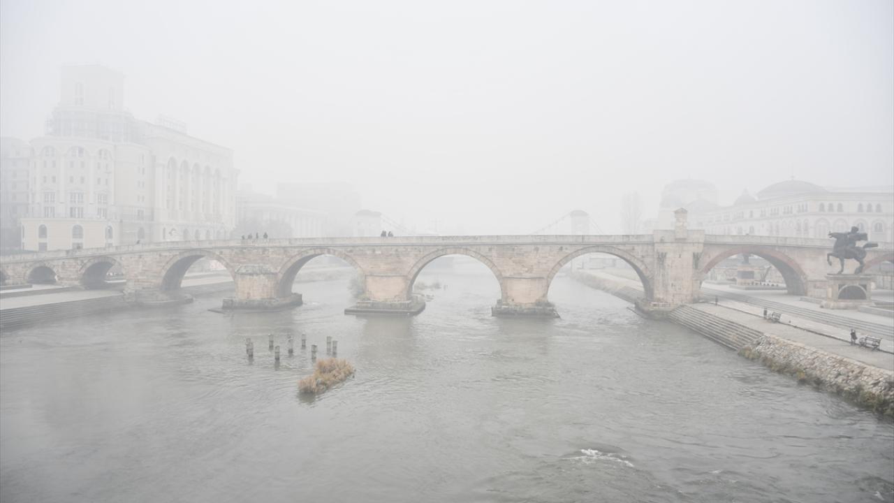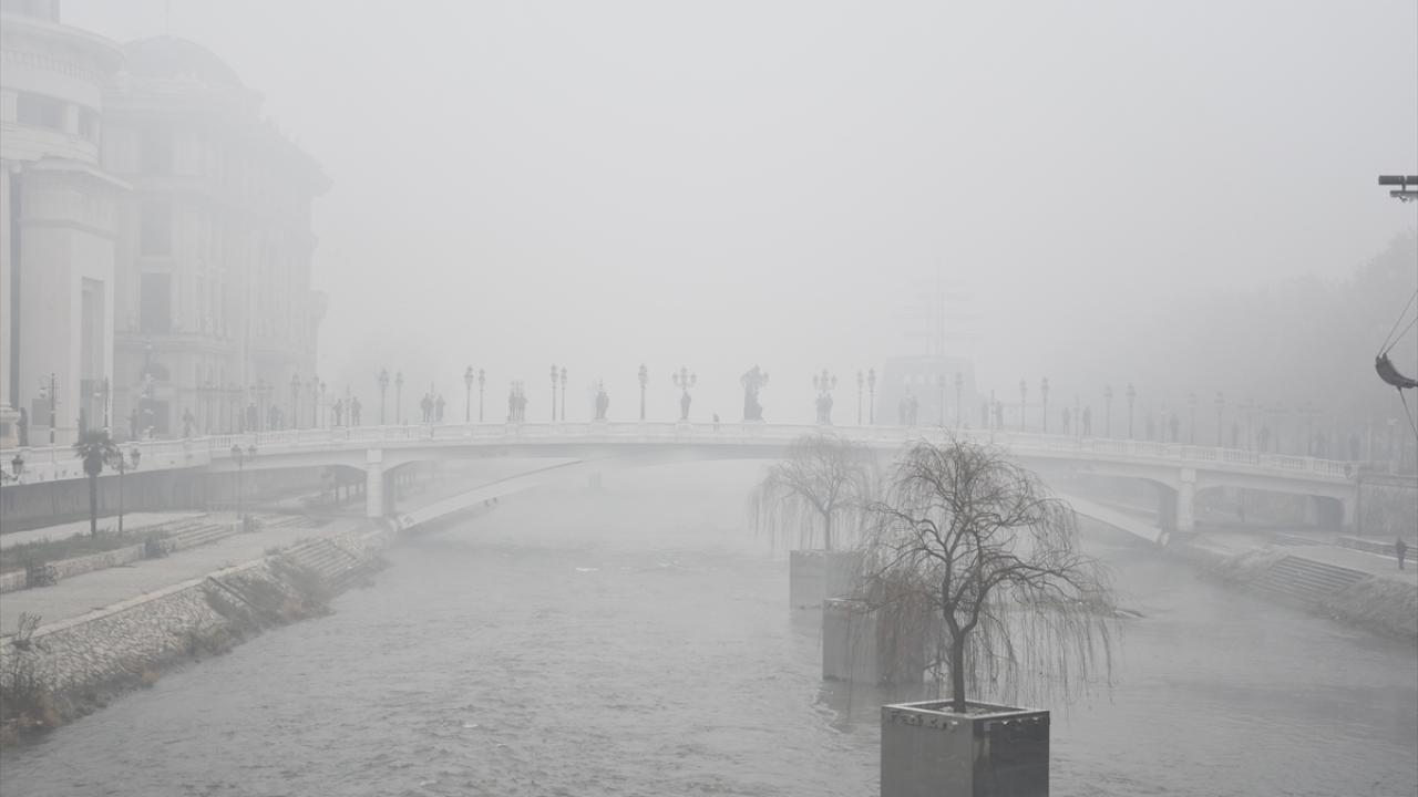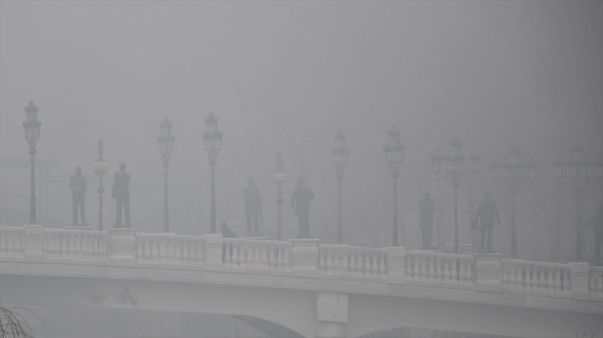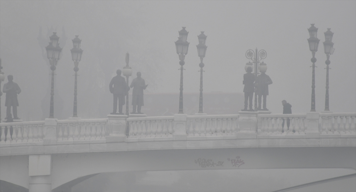 Kuzey Makedonya'da hava kirliliğinin artması ve yoğun sis sebebiyle görüş mesafesi düştü.