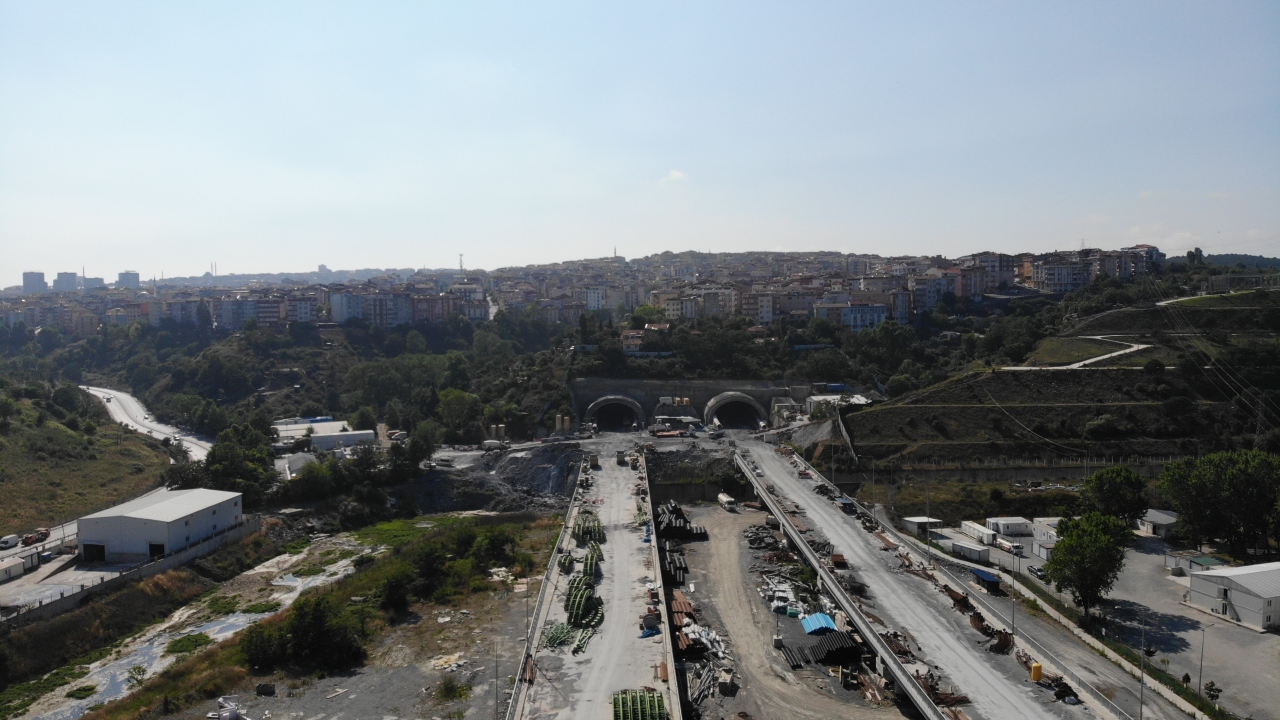 Dünyanın en geniş tünelleri olma özelliğine sahip olan 4 şeritli tünellerindeki çalışmalar da havadan çekilen görüntülere yansıdı.