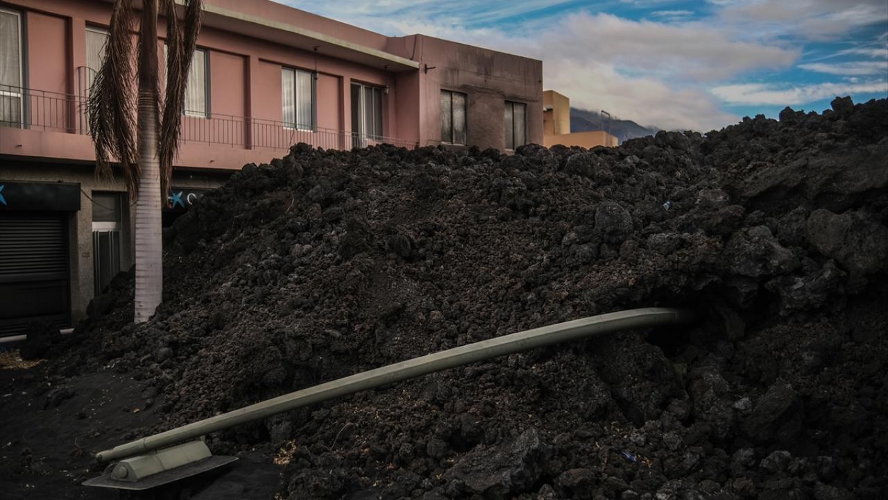İspanya'nın La Palma Adası'nda 19 Eylül'den bu yana aktif olan Cumbre Vieja Yanardağı'nın sismik aktivitelerinin durduğunun ve sönme belirtilerinin kaydedildiğinin bildirilmesi sonrası patlamalardan en çok etkilenen Las Manchas mahallesinde evler küller altında kaldı.