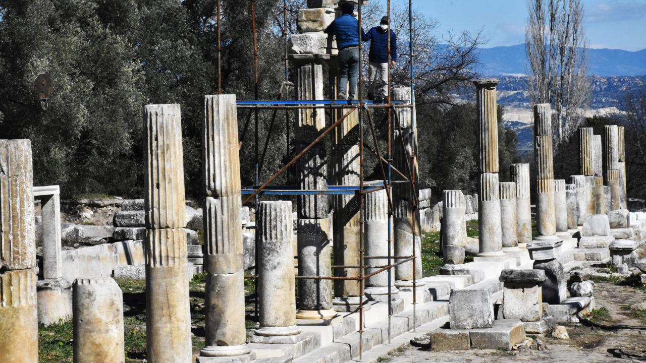 Lagina Hekate Kutsal Alanı'nda 2 bin 50 yıllık sütunlar yeniden yükseliyor