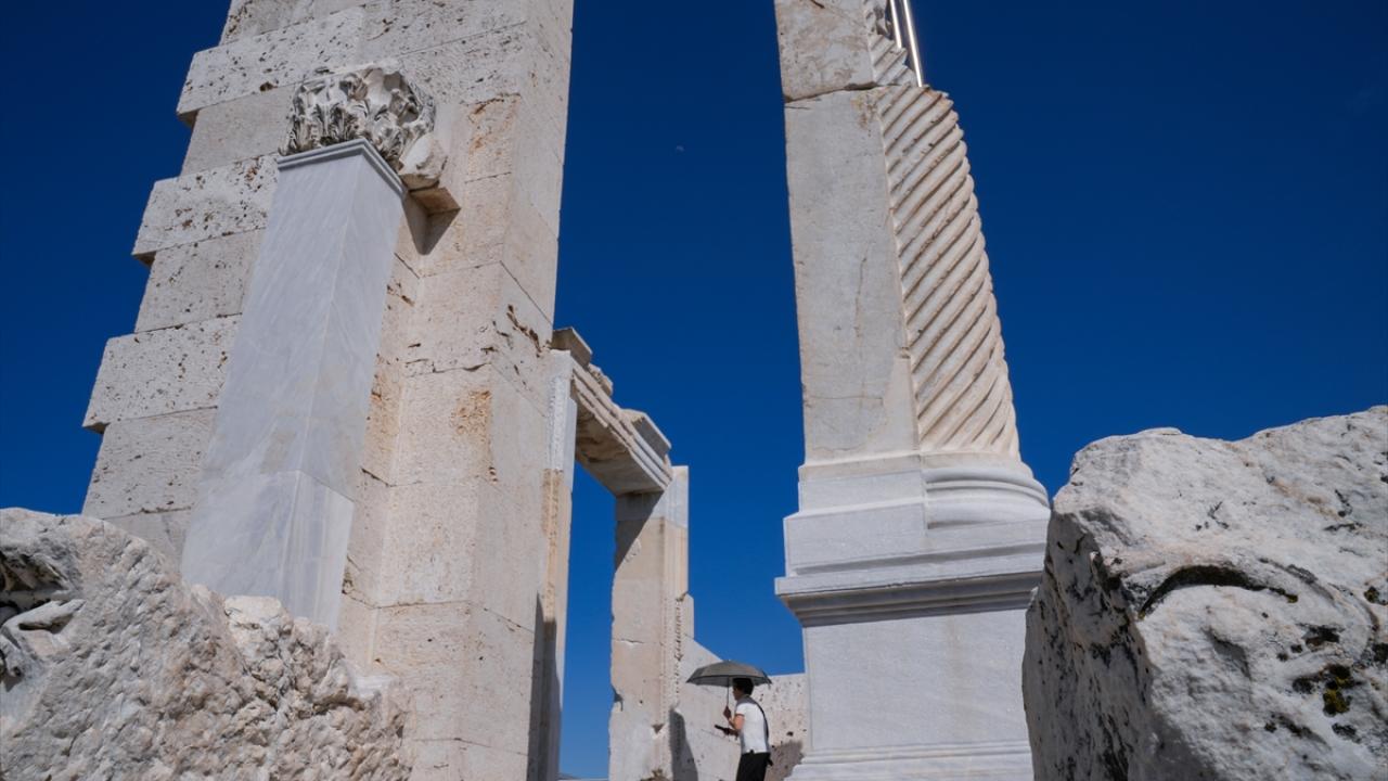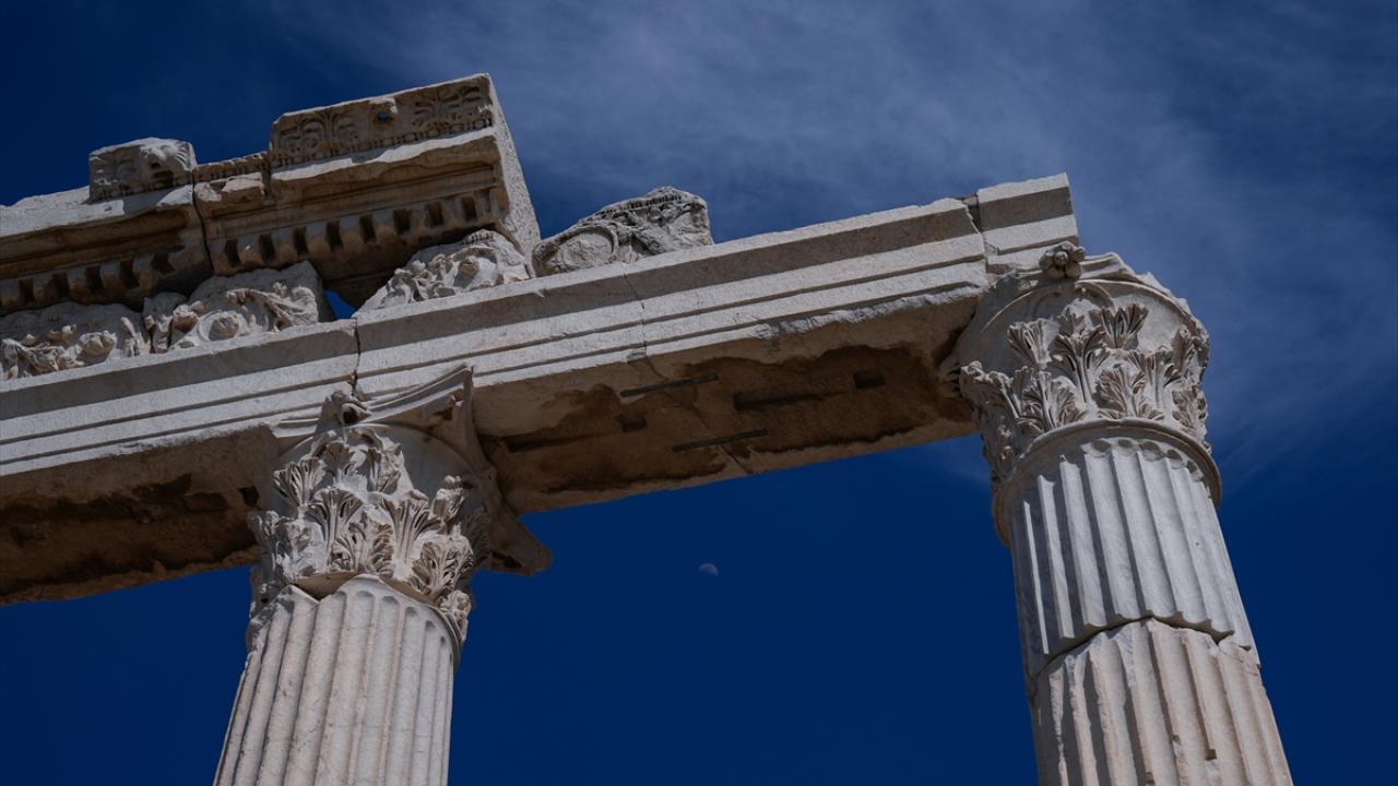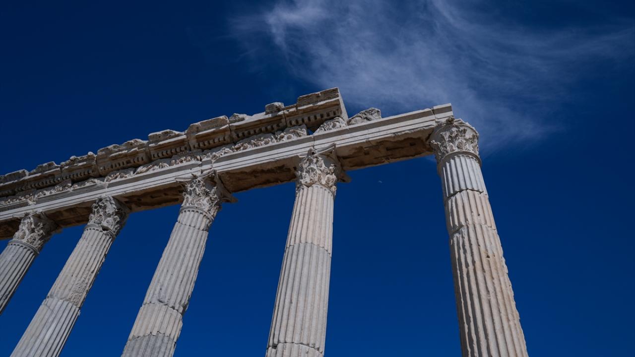 Misafirlerini adeta zaman yolculuğa çıkaran antik kent, Anadolu Ajansı (AA) ekibince FPV dron ile görüntülendi.