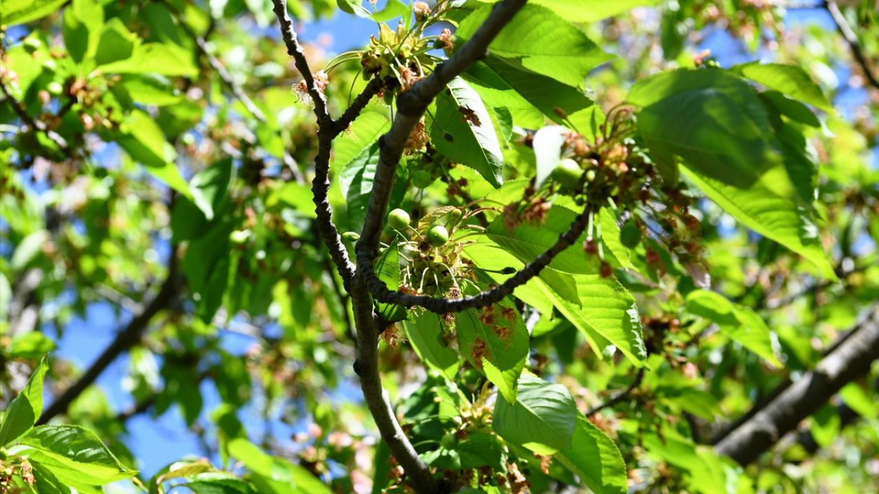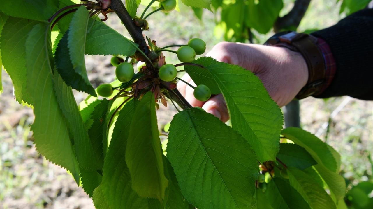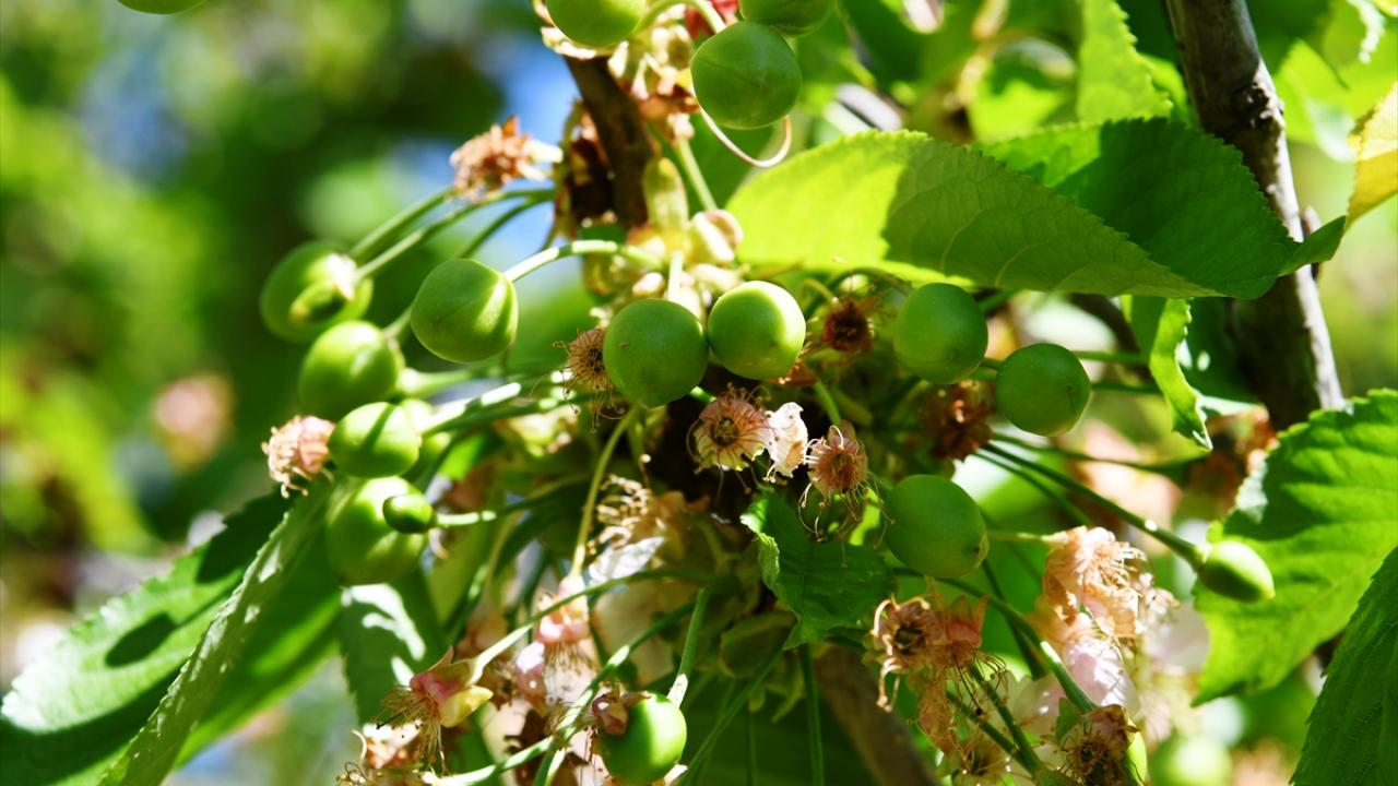 Arazilerindeki kiraz ağaçlarının büyük bölümü çiçeklerini döken ve tane tutumu gerçekleşen üreticiler, bu sezon yüksek verim bekliyor.
