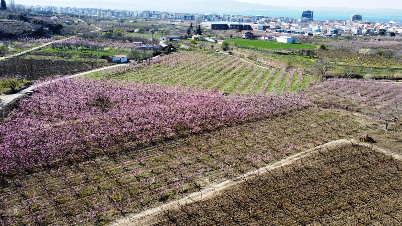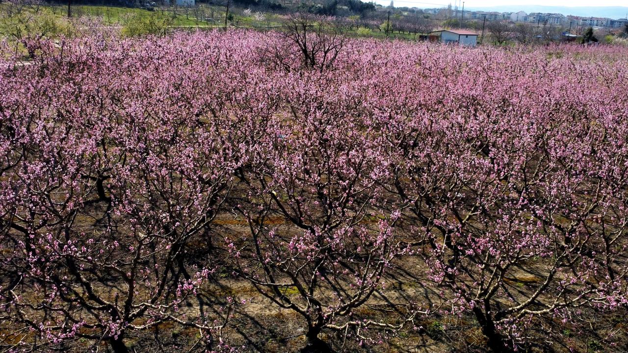 Lapseki`nin meyve bahçelerinde çiçek açan şeftali ve nektarin ağaçları doğada rengarenk görünüm oluşturdu. Meyve bahçelerindeki bu canlılık, üreticiler açısından bereketli bir hasat sezonunun da müjdecisi oldu.