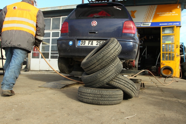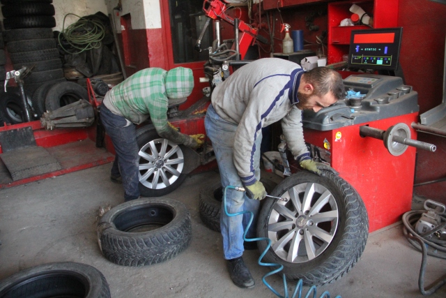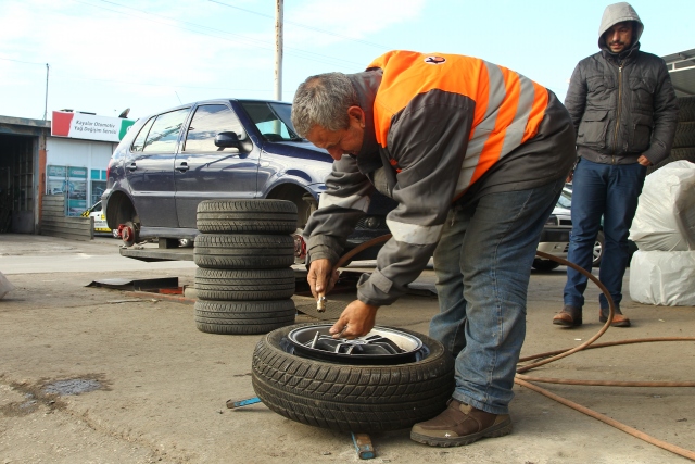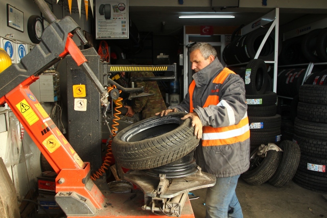 Şehirler arası yük ve yolcu taşıyan ticari araçlar için yarın başlayacak zorunlu kış lastiği uygulaması nedeniyle satış yerleri ve tamircilerde "son gün yoğunluğu" görülüyor.