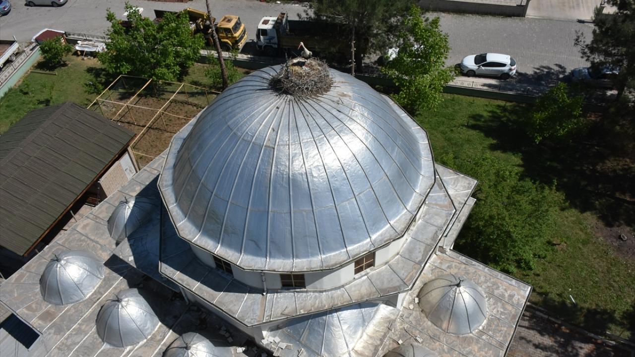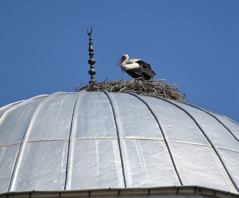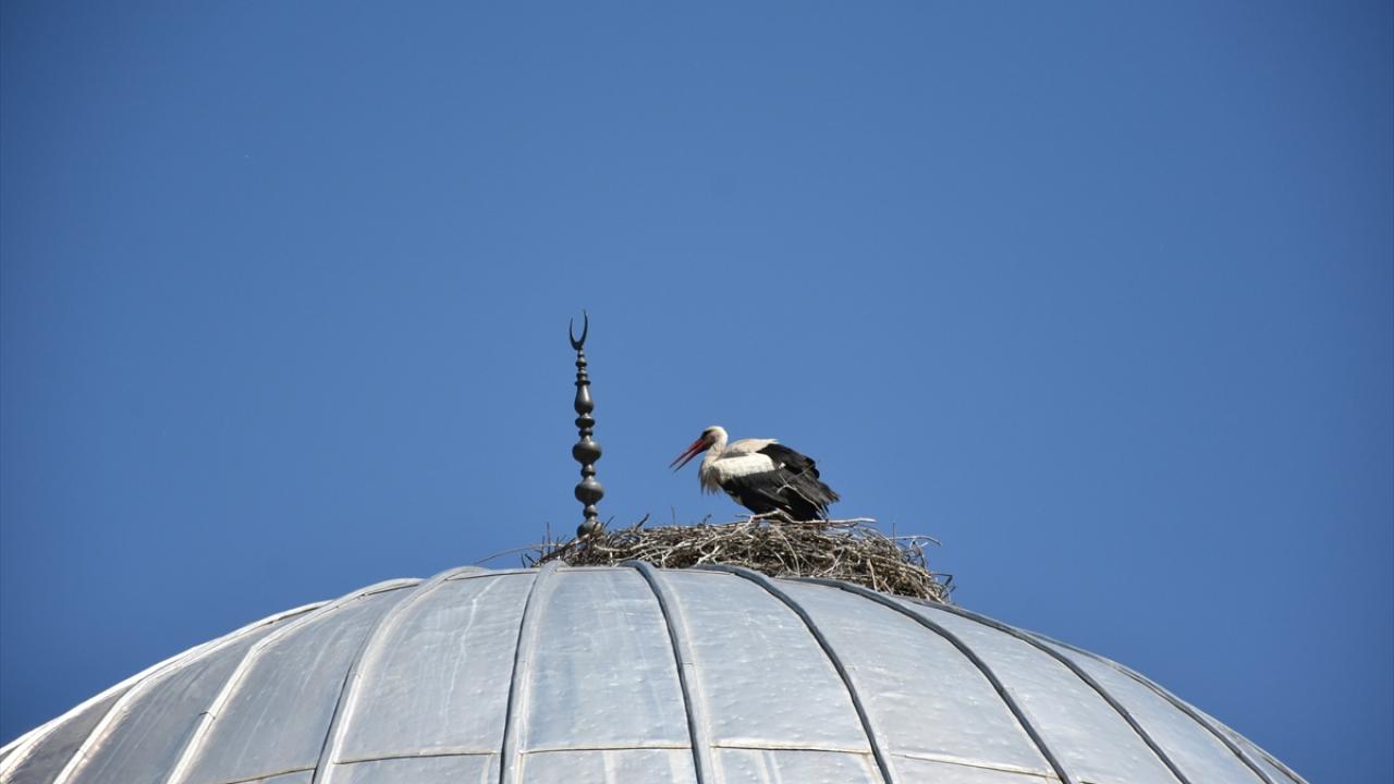 Leylekler 27 yıldır aynı caminin kubbesinde konaklıyor
