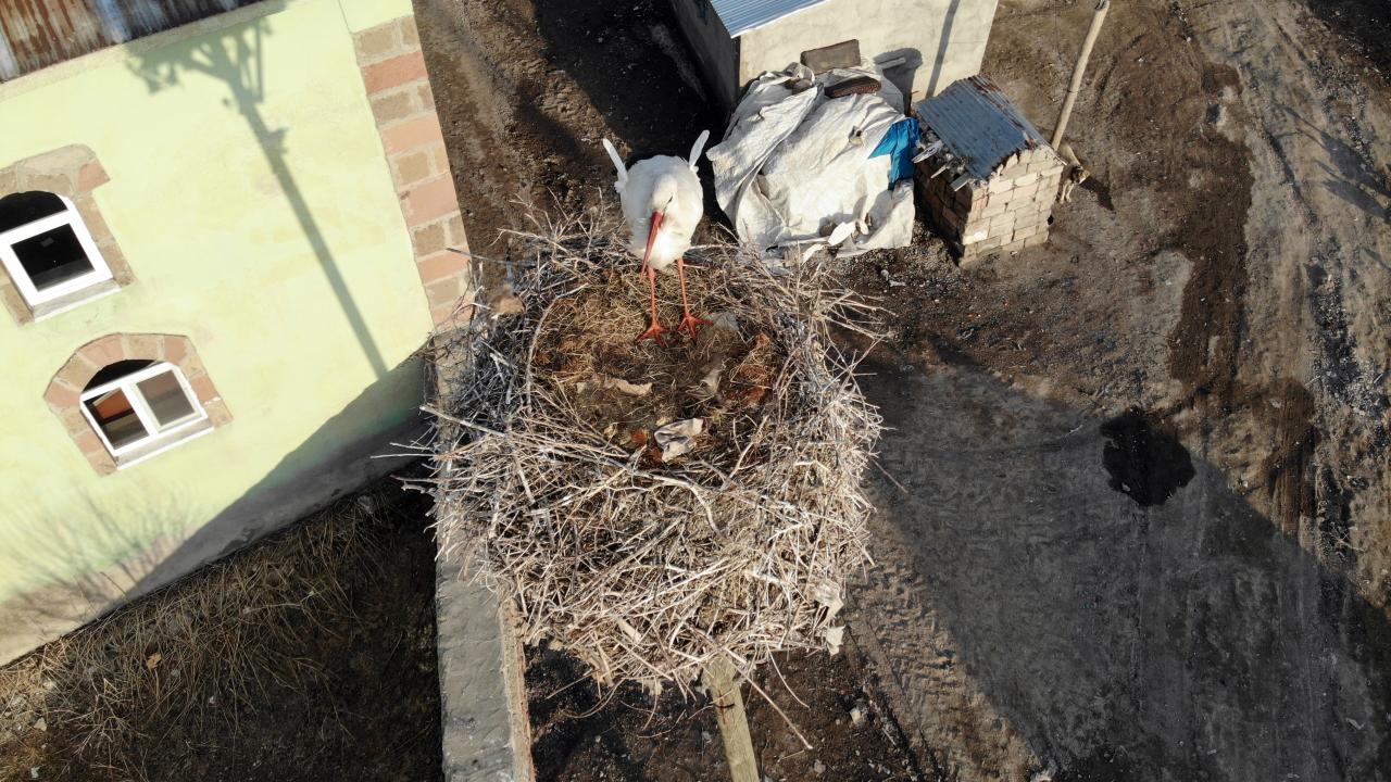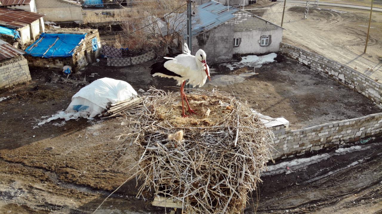 Ağrı`dan sonbaharda sıcak bölgelere göç eden leylekler, havaların ısınmasıyla geri gelmeye başladı.