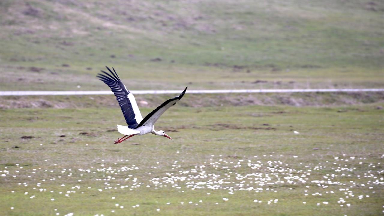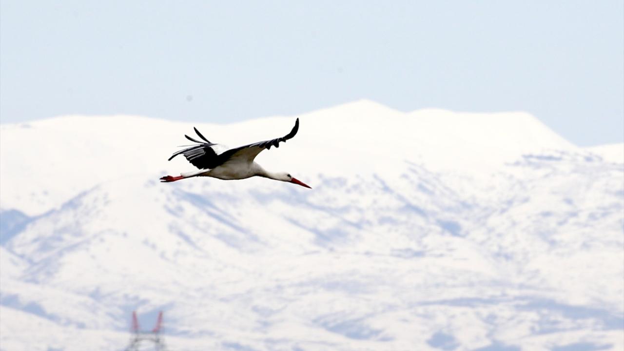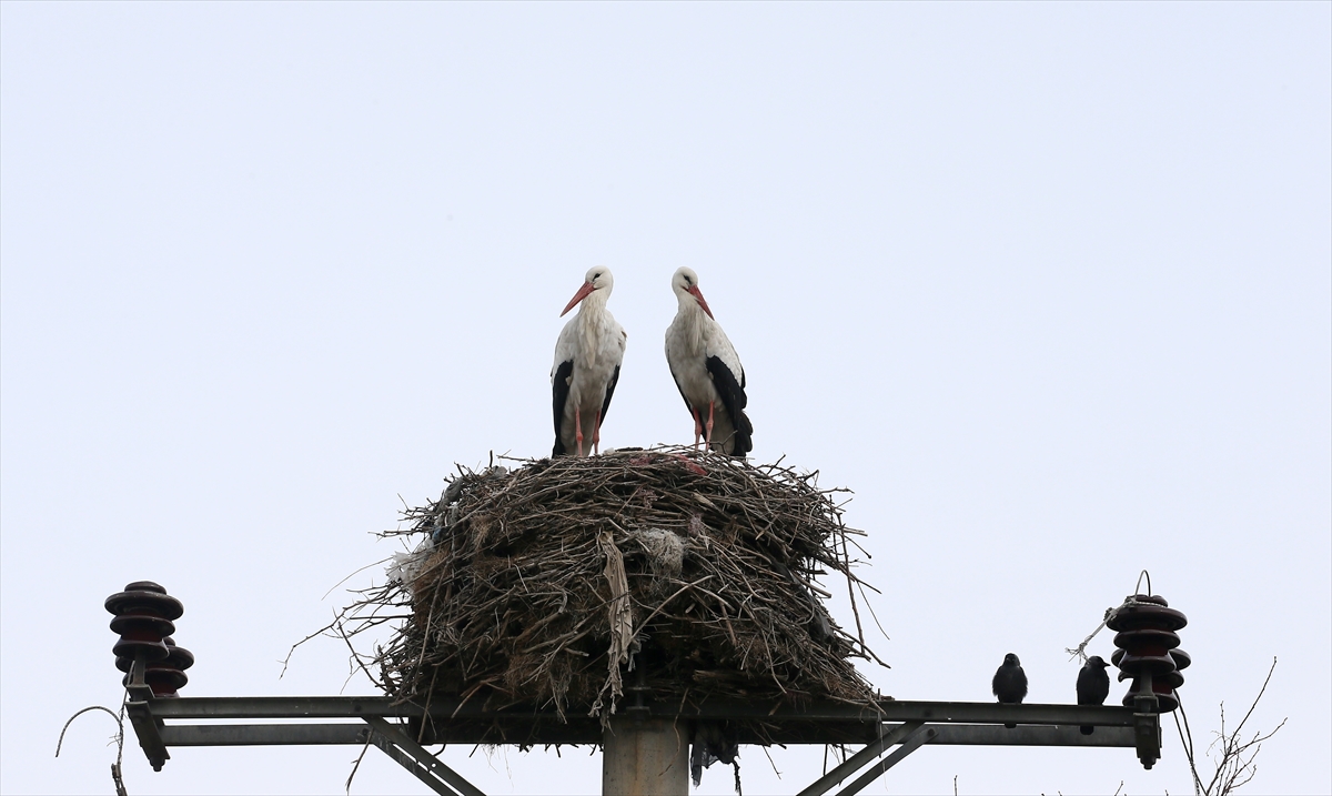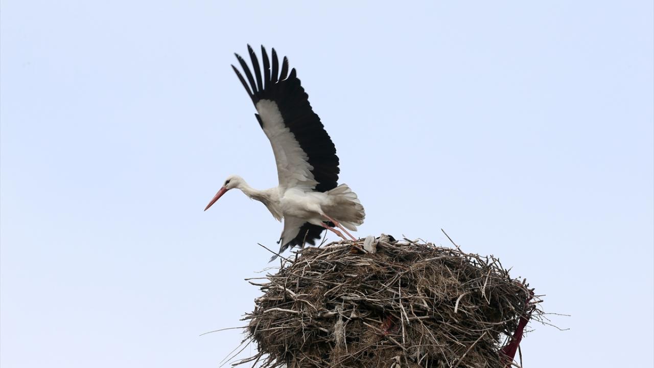 Kışın sıcak bölgelere göç eden leylekler, havanın ısınmasıyla ovadaki köylerde bulunan yuvalarına dönmeye başladı.