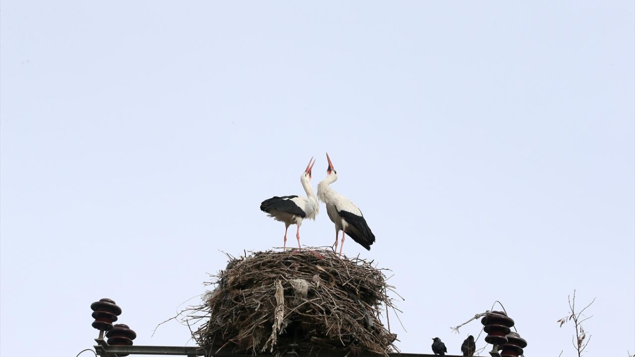 Göç ettikleri bölgelerden kente gelen leylekler, elektrik direği, cami kubbeleri ve evlerin çatısına yaptıkları yuvalarına yerleşti.