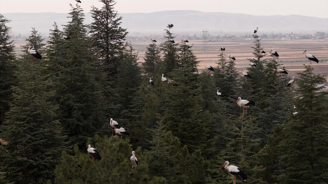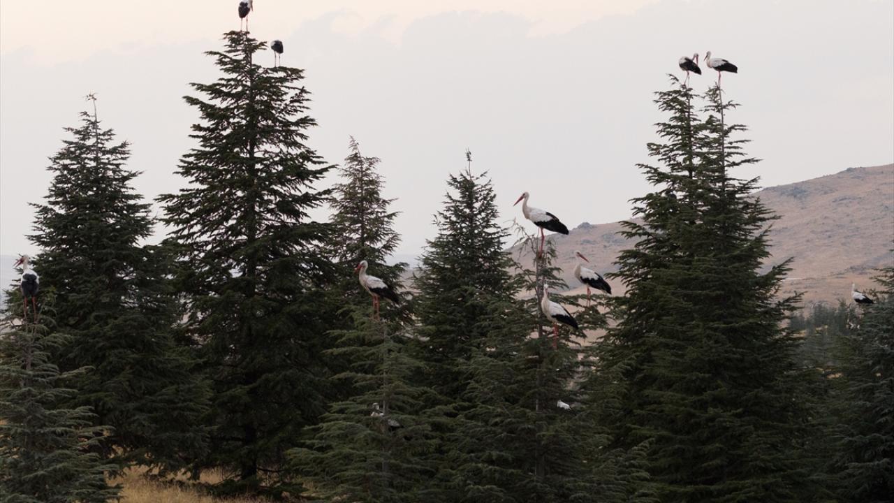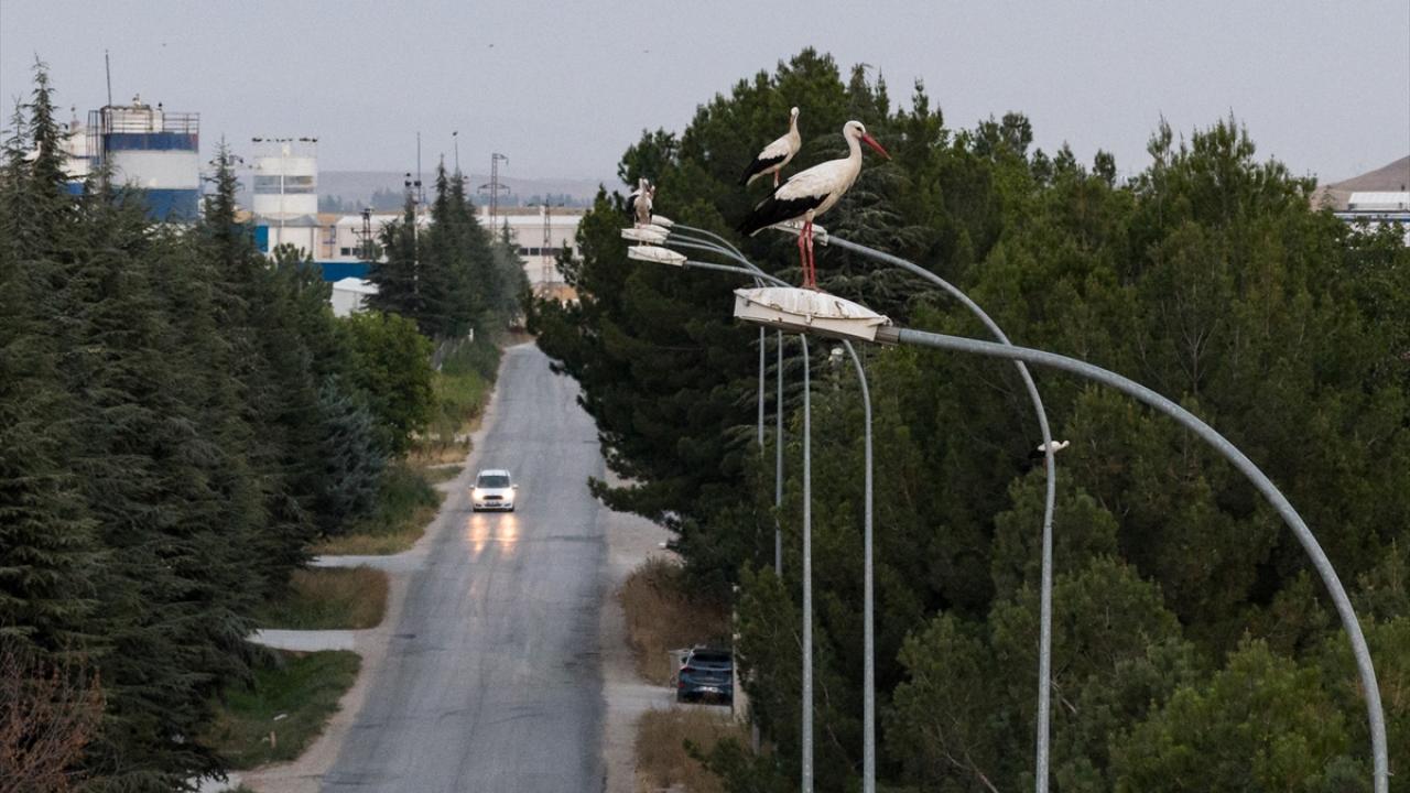 Gökyüzünde süzülen leylekler, ağaç dallarına, kayaların üzerine ve aydınlatma direklerine konarak dinlendi.