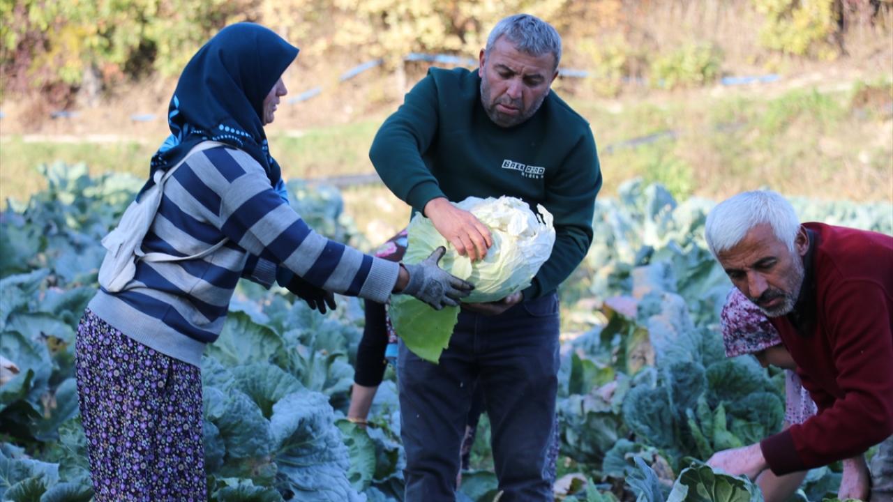 Dolması, turşusu ve salatalığı yapılan lahana, üreticiler tarafından toplanarak pazarlarda satılıyor.