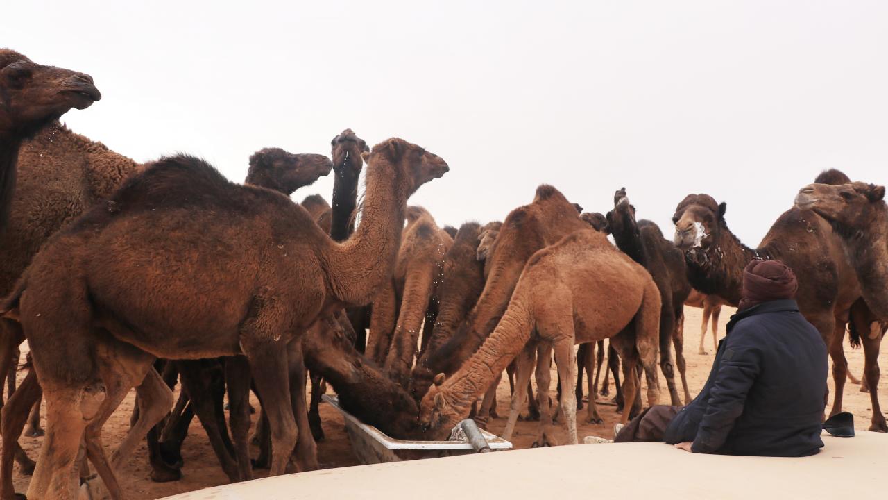 Develeri için çölde otlak ve su arayan bedeviler, çöl yaşamını kente tercih ediyor.