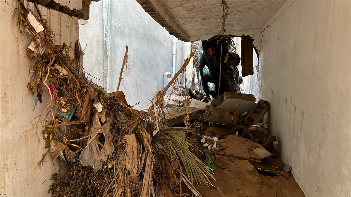 Libya'nın doğusunu etkisi altına alan "Daniel" fırtınası sebebiyle sel felaketiyle karşı karşıya kalan Derne kentinde çok sayıda bina ve araç da hasar gördü.