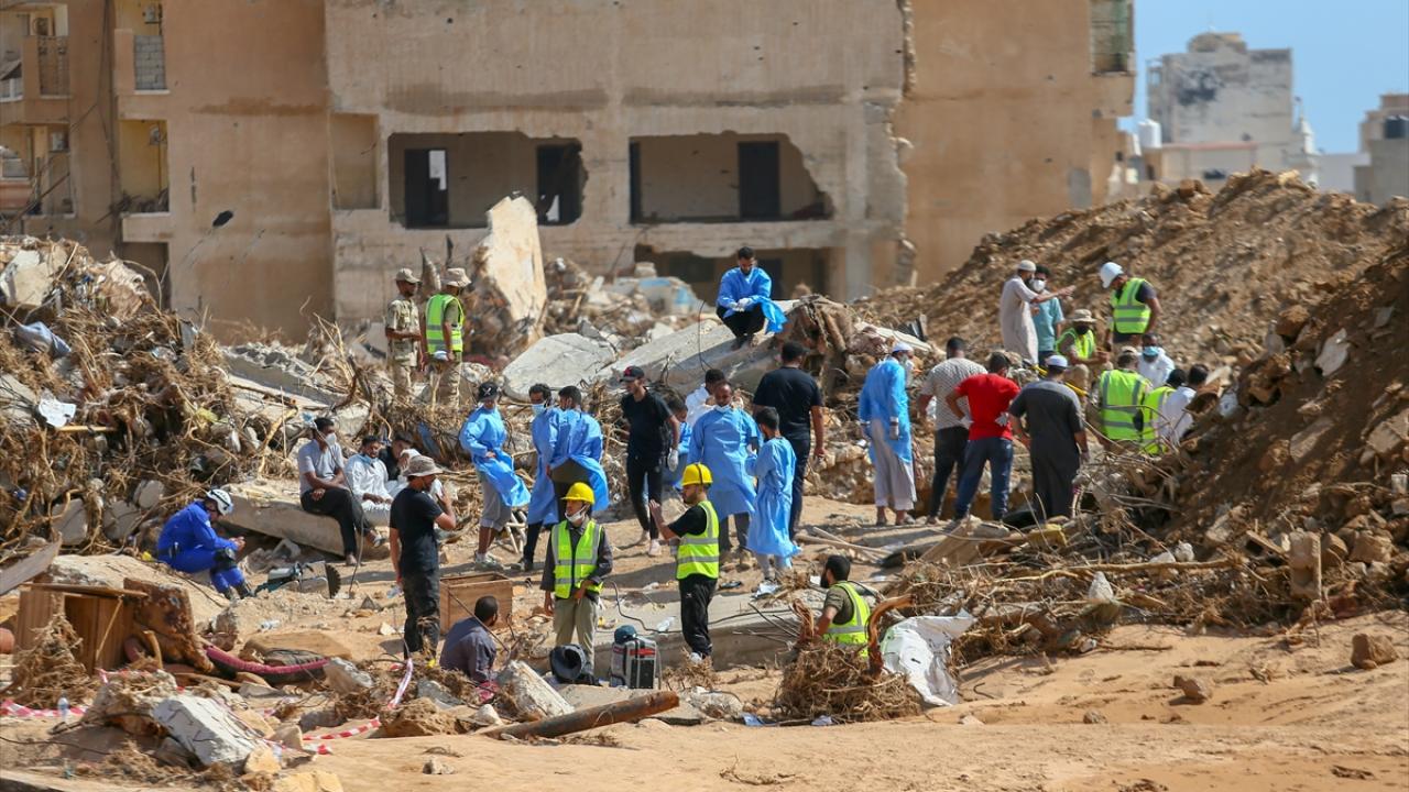 Türkiye`den gelen ekiplerin koordinatörlüğünde Derne`de arama kurtarma çalışmaları sürüyor.
