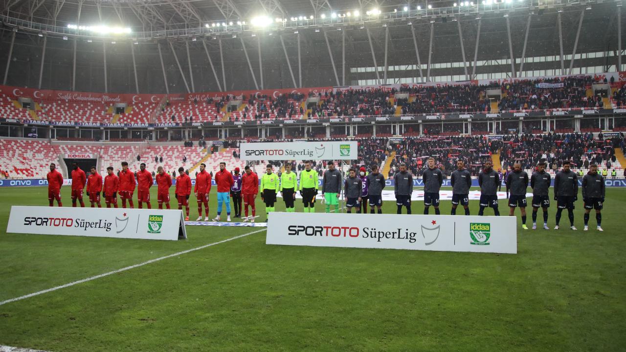11 Ocak`ta trafik kazasında hayatını kaybeden İttifak Holding Konyaspor 6 numaralı futbolcusu Ahmet Çalık için karşılaşmanın 6. dakikasında, top taça atılarak oyun bir süre durdu.