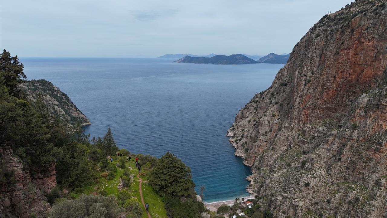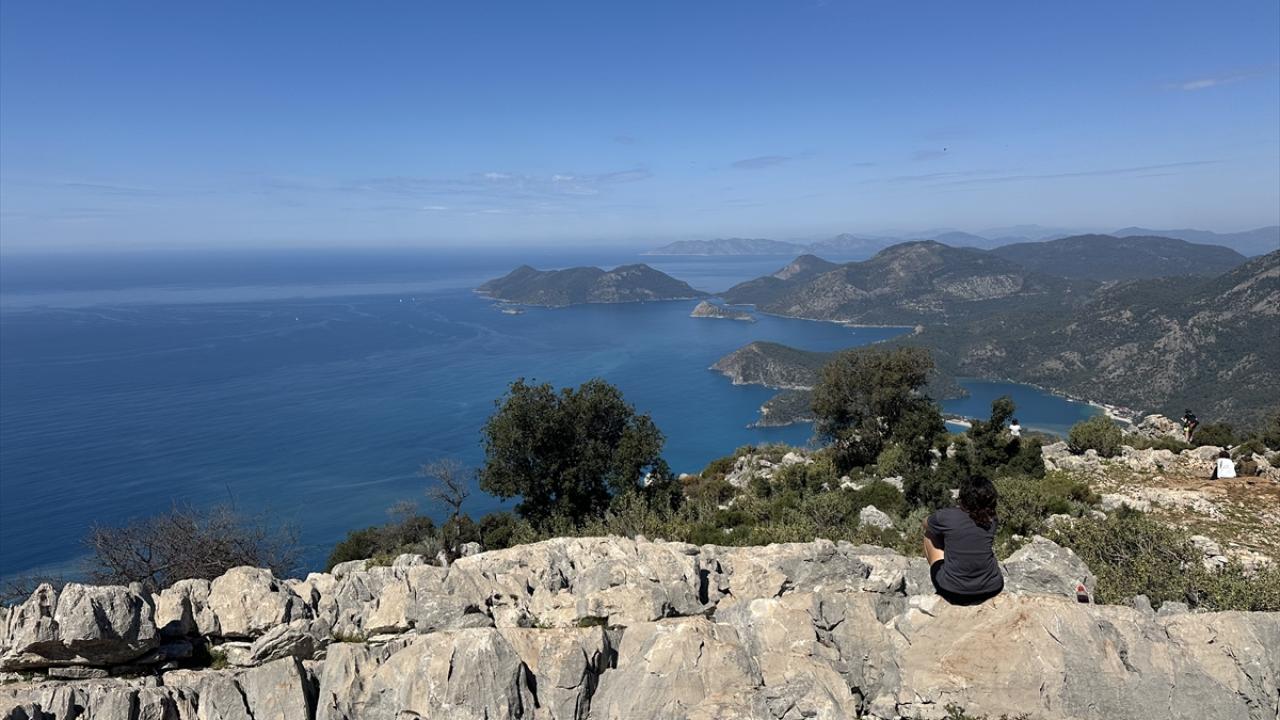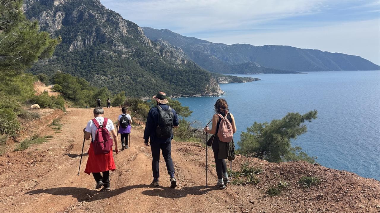 Türkiye`nin en önemli doğa turizmi güzergahlarından biri olan Likya Yolu`nun Kayaköy, Ölüdeniz, Ovacık, Faralya, Kabak Koyu ve Yedi Burunlar hattını kapsayan parkurlarda bir araya gelen yürüyüş grupları, Akdeniz’in turkuaz manzarası eşliğinde yolculuk yapıyor.