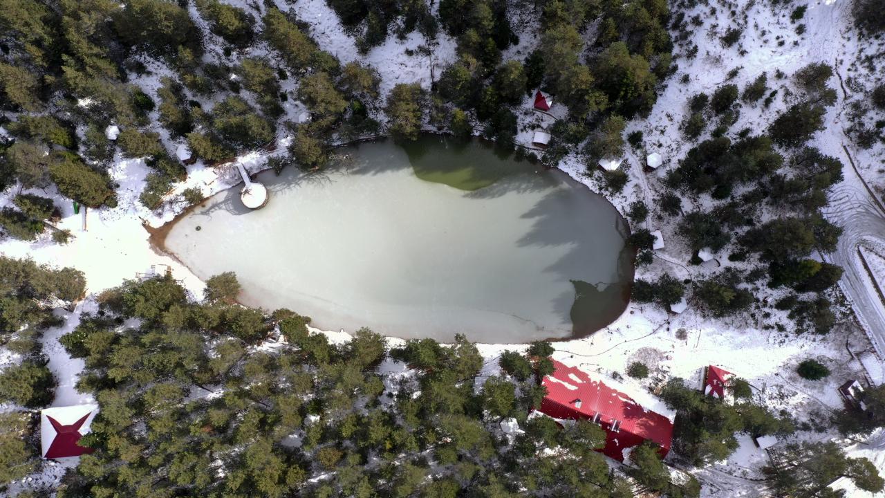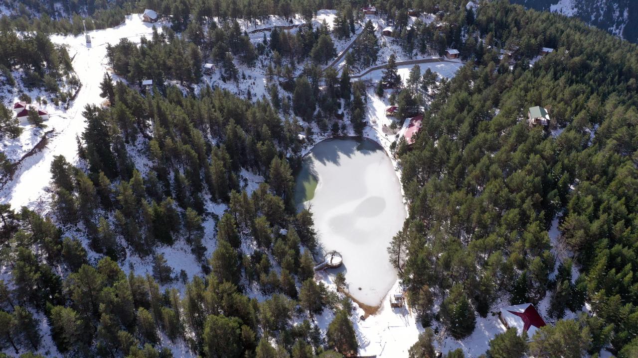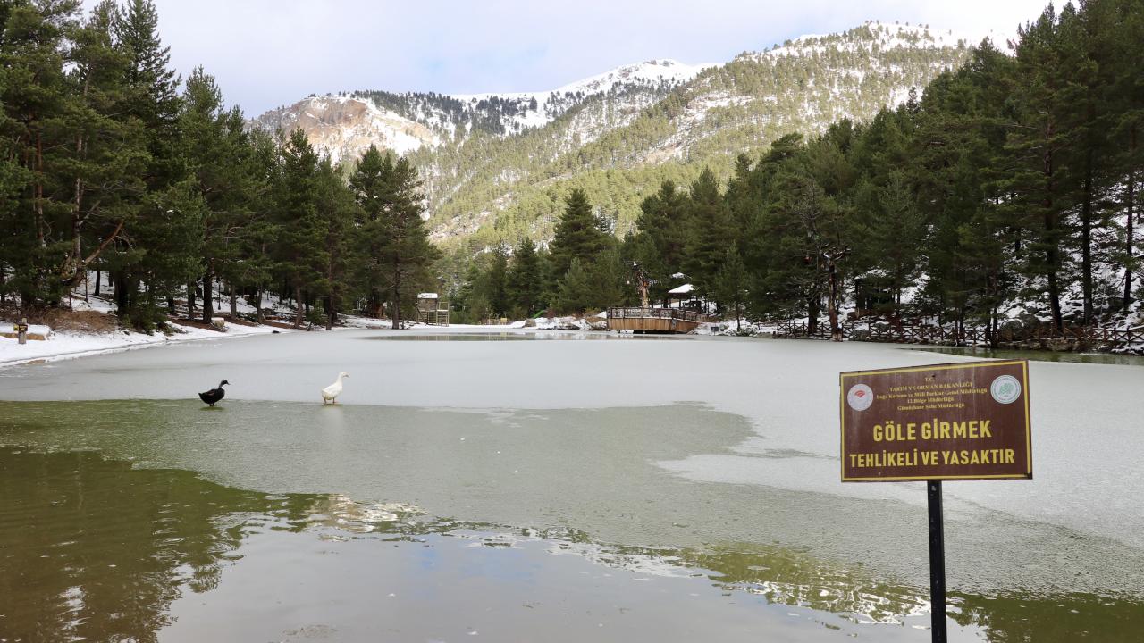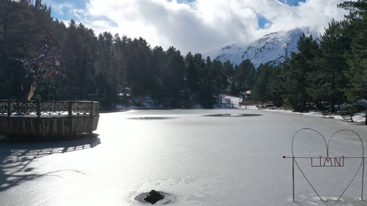 Tarihi İpek Yolu güzergahındaki Zigana Dağı'nın eteklerinde sarıçam ve ladin ağaçlarıyla kaplı Limni Gölü'nün büyük bölümü, bölgede hava sıcaklığının düşmesinin ardından buzla kaplandı.