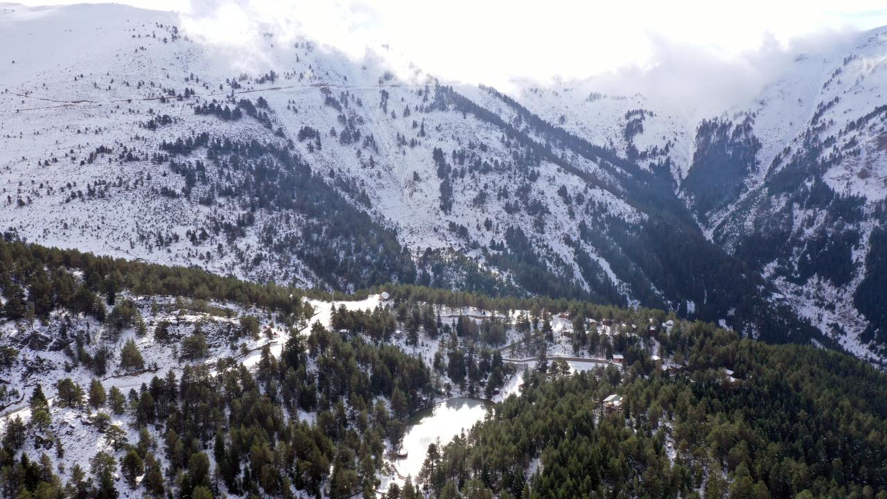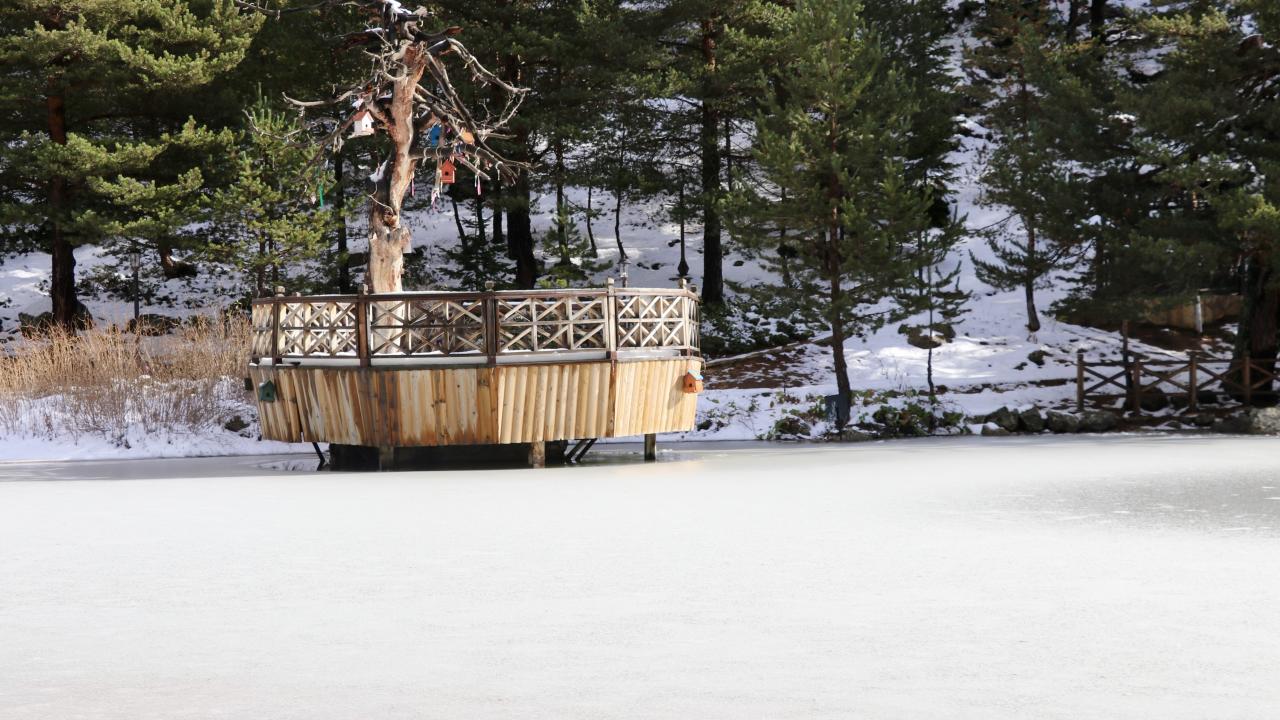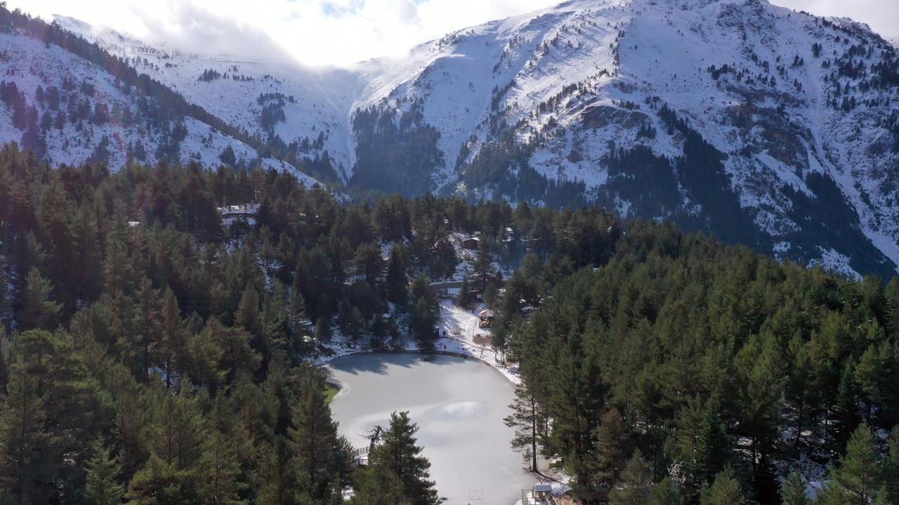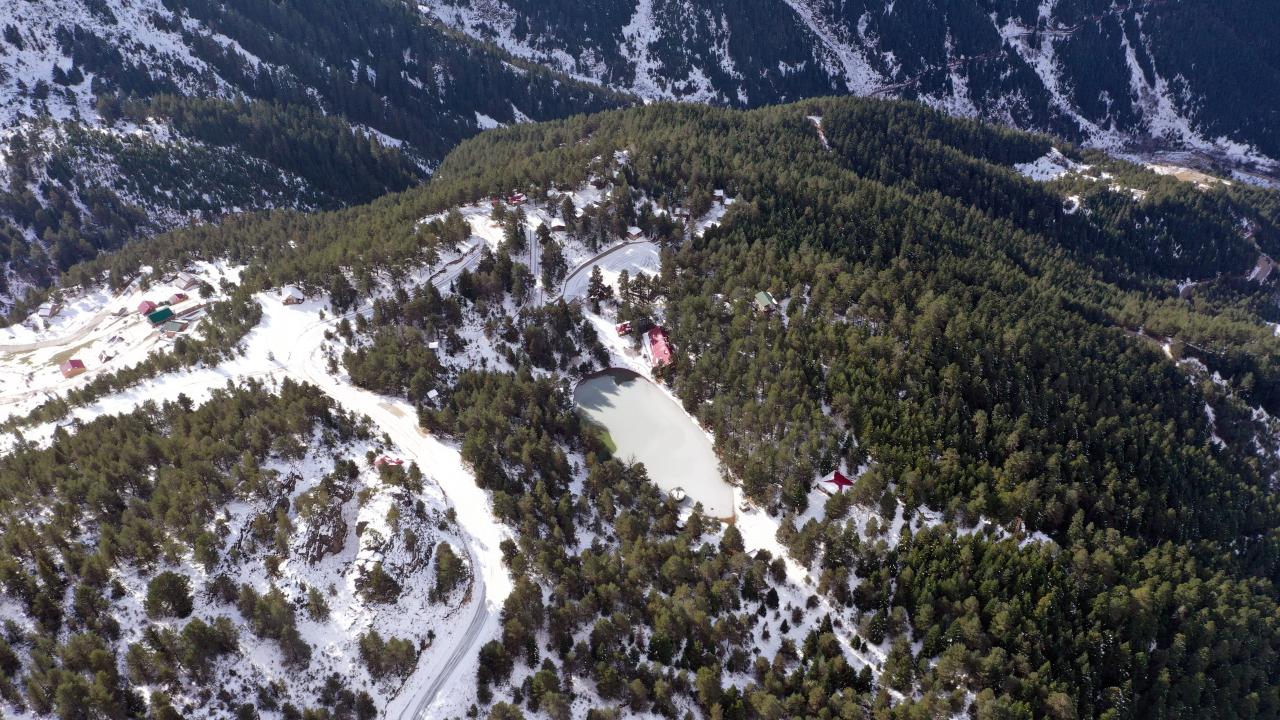Tarihi İpek Yolu güzergahındaki Zigana Dağı'nın eteklerinde sarıçam ve ladin ağaçlarıyla kaplı Limni Gölü'nün büyük bölümü, bölgede hava sıcaklığının düşmesinin ardından buzla kaplandı.