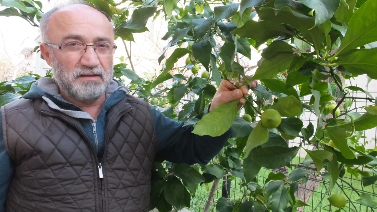 İlk defa limon ağacında meyve ve çiçeği bir arada gördüğünü söyleyen Devrim, bahçedeki güllerin de açtığını belirtti.