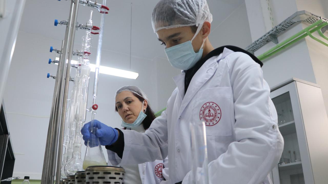 Üretilen yağın laboratuvarda analizini de öğrencilerce yapıyor.