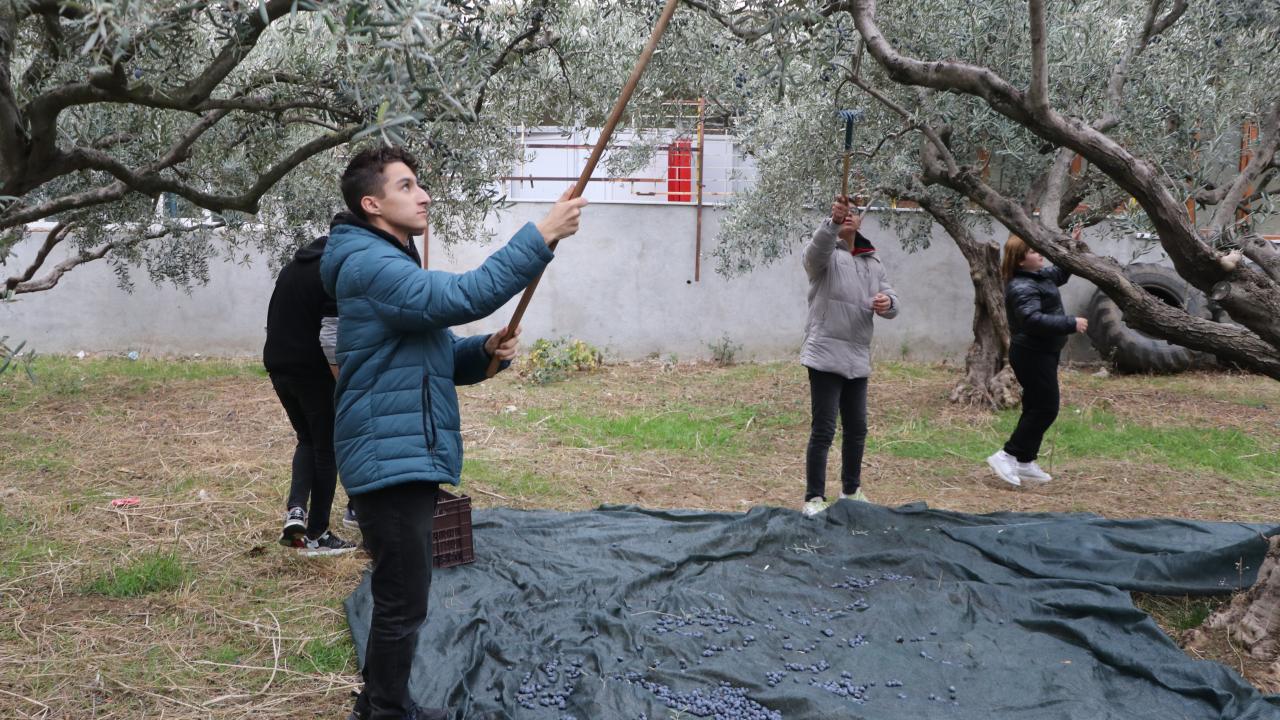 Öğrenciler hem okul bahçesindeki zeytinleri hem de bölge çiftçilerinin zeytinlerini işleyerek hem tecrübe kazanıyor hem de döner sermayeden harçlıklarını çıkarıyor.