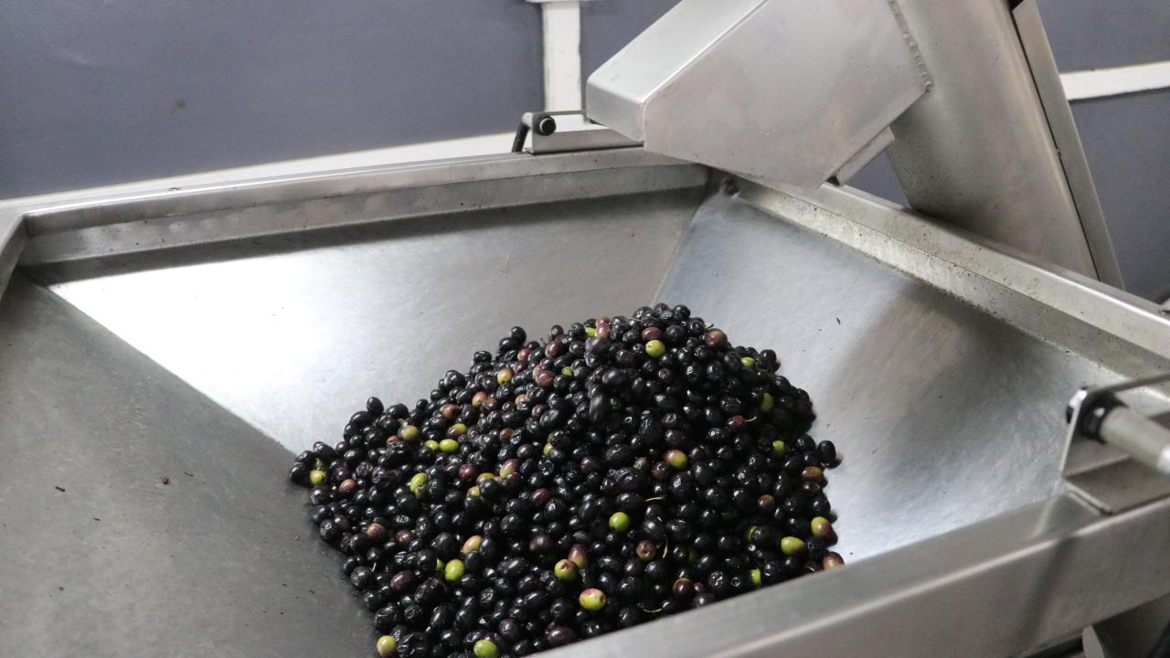 Daha sonra toplanan zeytinler sıkım atölyesinde yıkama, kırma ve sıkma işleminden geçirilerek yağ üretiliyor.