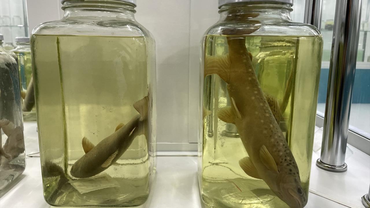Müzede 350`si tatlı su balığı olmak üzere 400`e yakın tür bulunduğunu belirten Turan, türlere ait yaklaşık 50 bin örneğin kavanozlarda yüzde 4 formaldehit içeren suda saklandığını, su bulanıklaştıkça değiştirildiğini, örnek balıkların bu şekilde 500 ila 1000 yıl bozulmadan korunabildiğini anlattı.