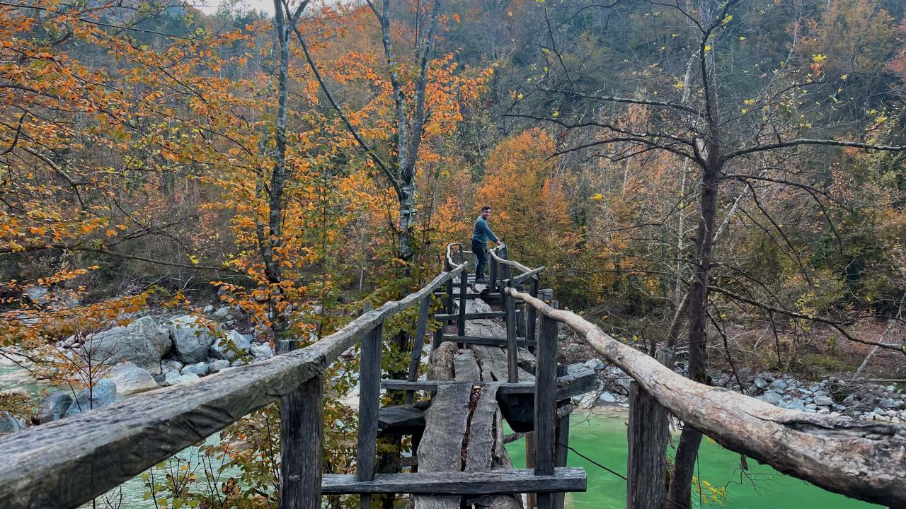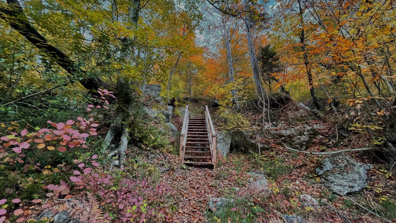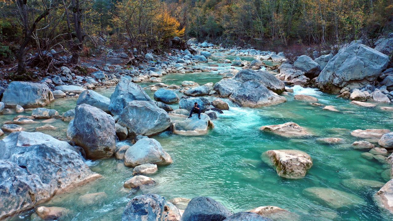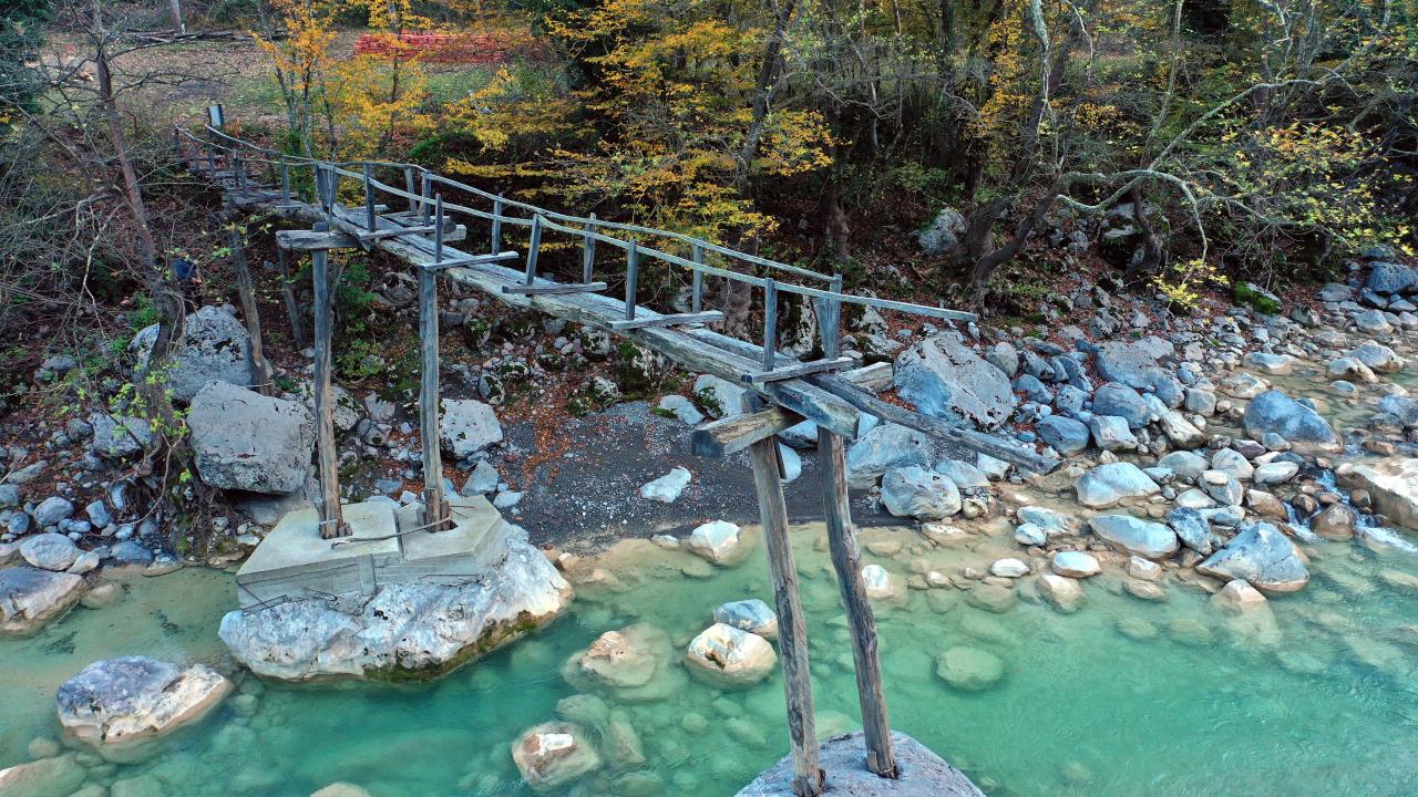 Vadiden geçen suda yazın serinleyen ziyaretçiler, sonbaharda rengarenk ağaçlar arasında yürüyüş yapabiliyor.