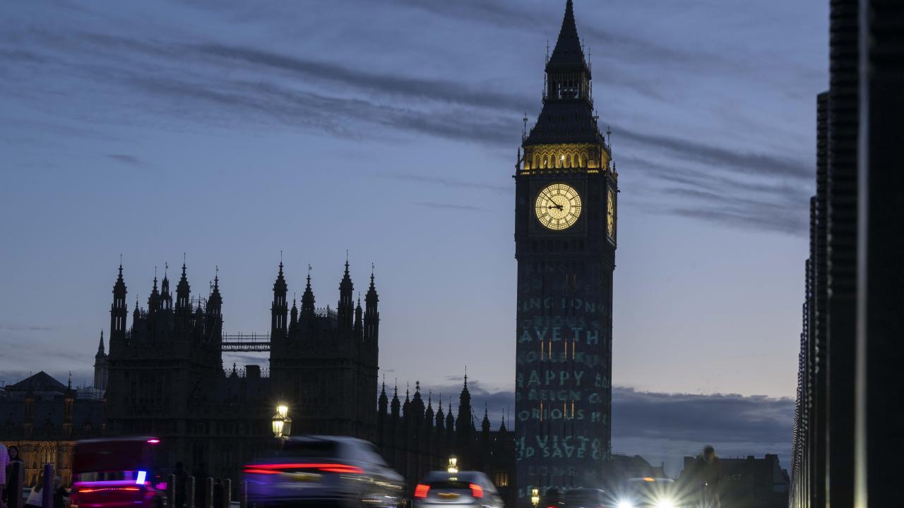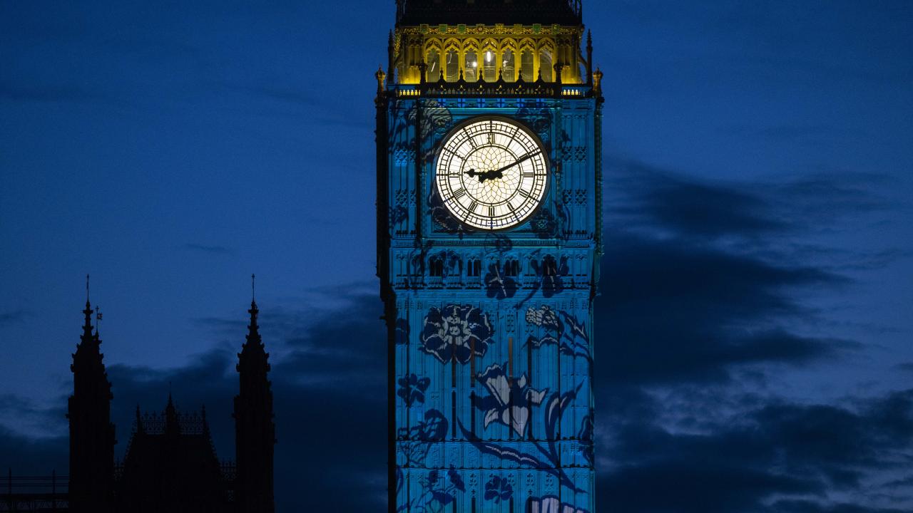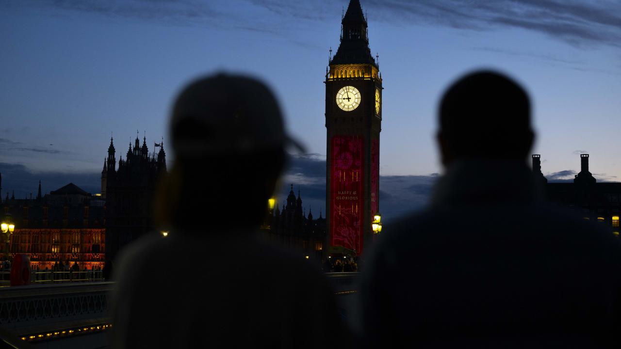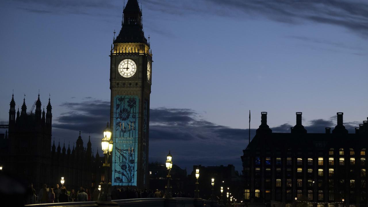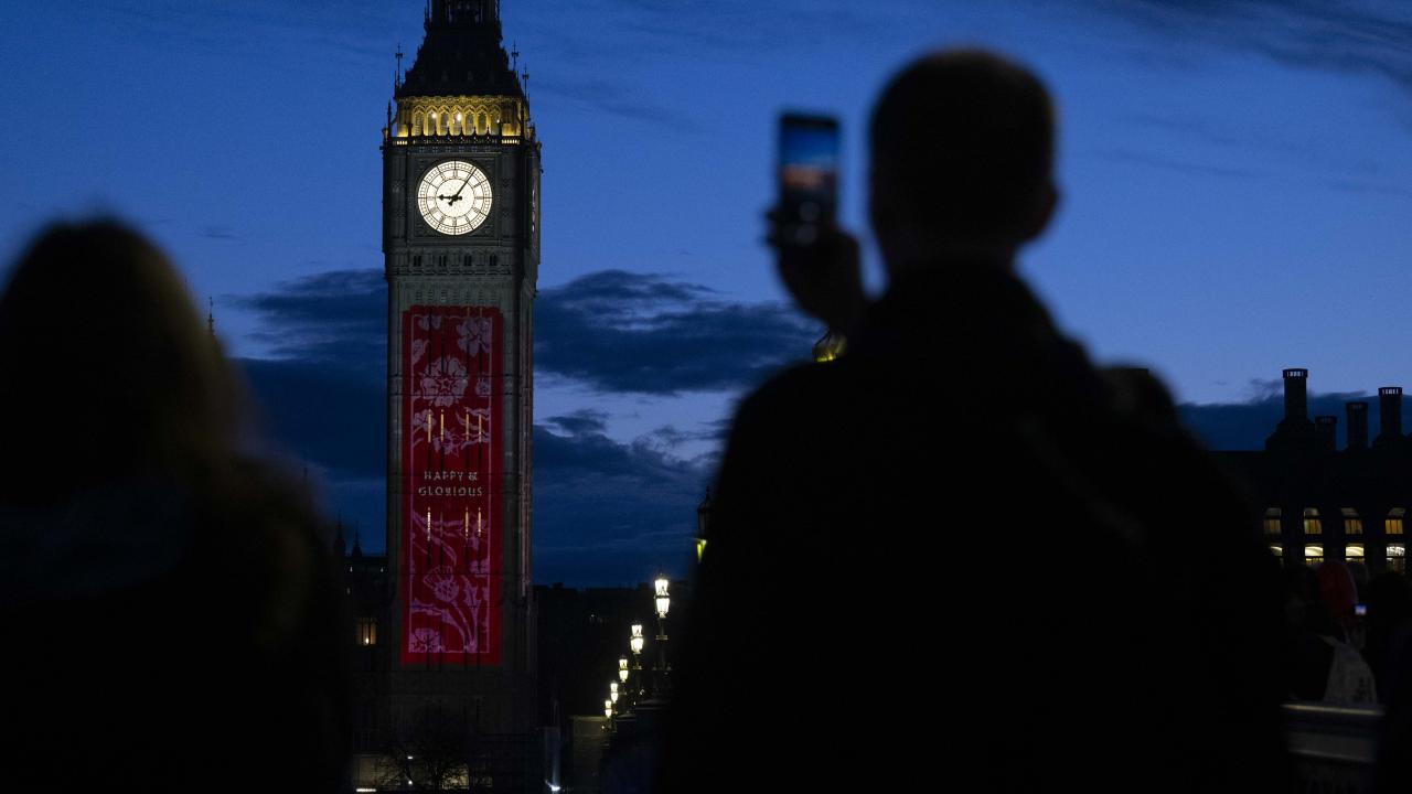Kral 3.Charles'in yarın gerçekleşecek olan taç giyme töreni kutlamaları kapsamında Londra'daki Big Ben Saat Kulesi "Taç giyme töreni" temalı ışık gösterisi ile aydınlatıldı.