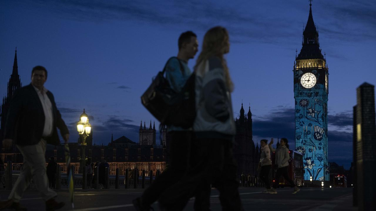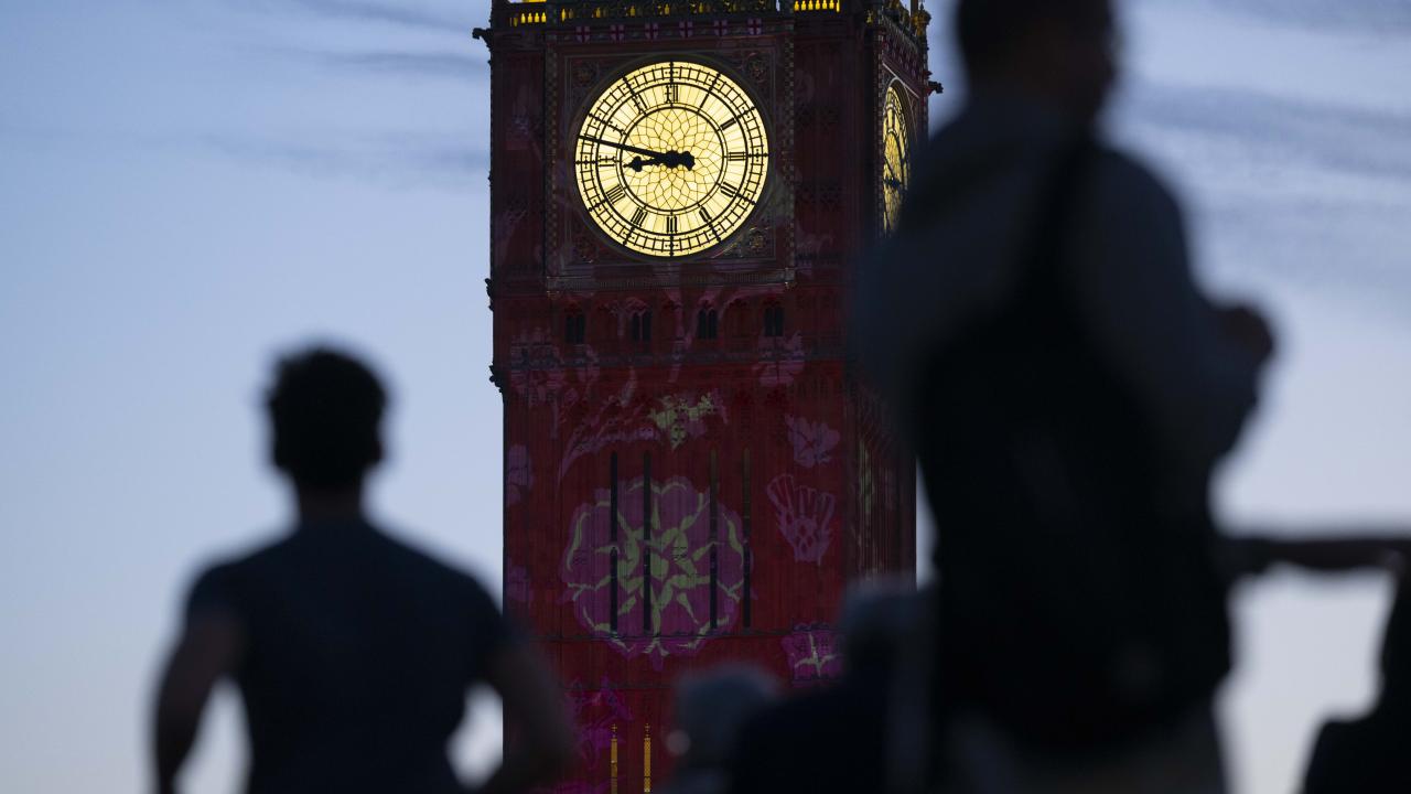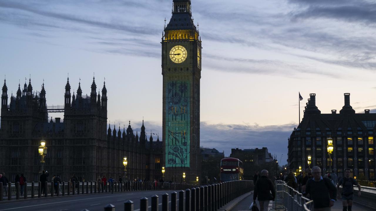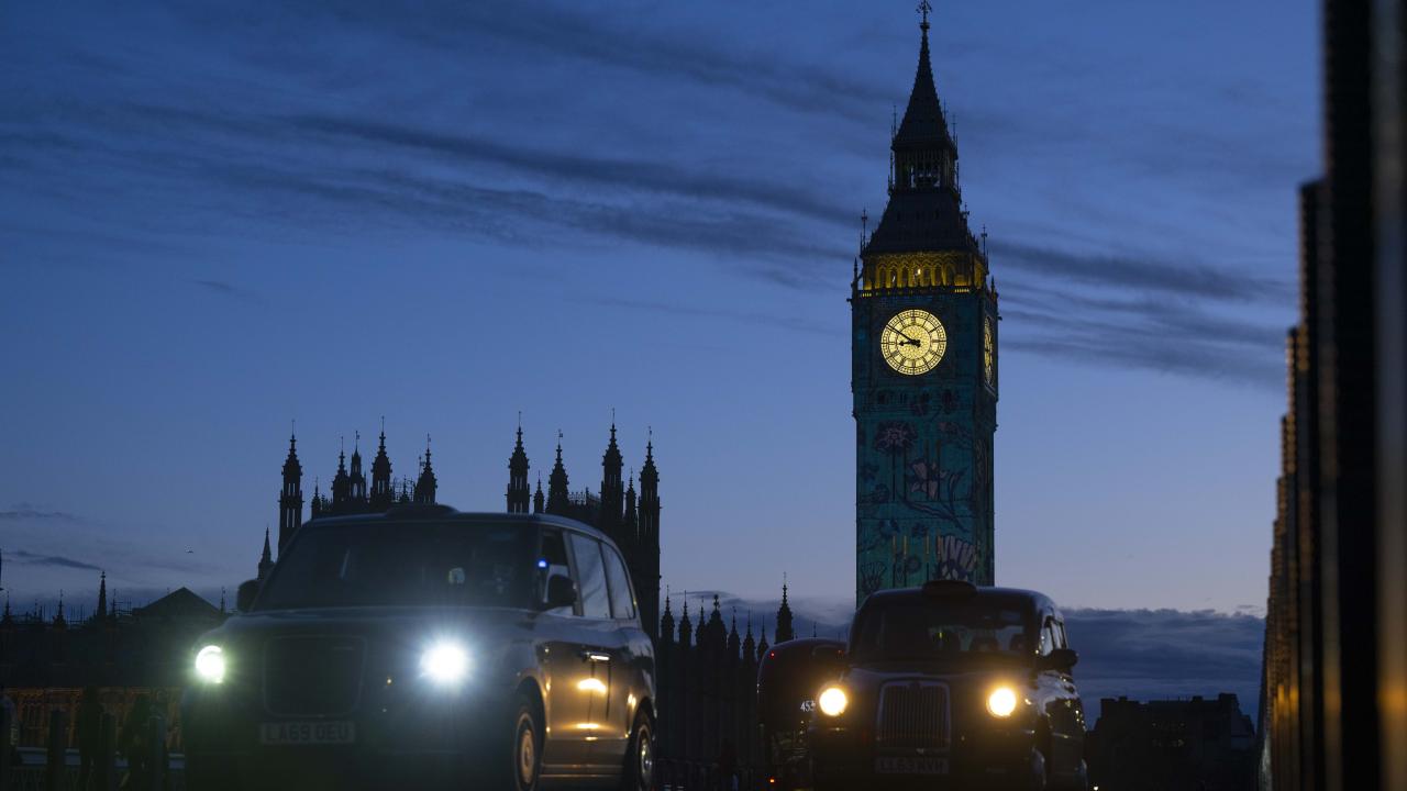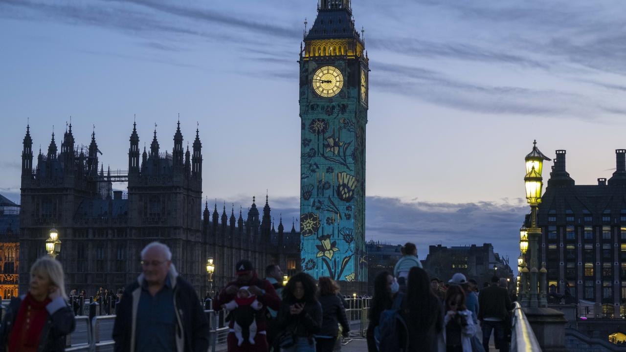 Kral 3.Charles'in yarın gerçekleşecek olan taç giyme töreni kutlamaları kapsamında Londra'daki Big Ben Saat Kulesi "Taç giyme töreni" temalı ışık gösterisi ile aydınlatıldı.
