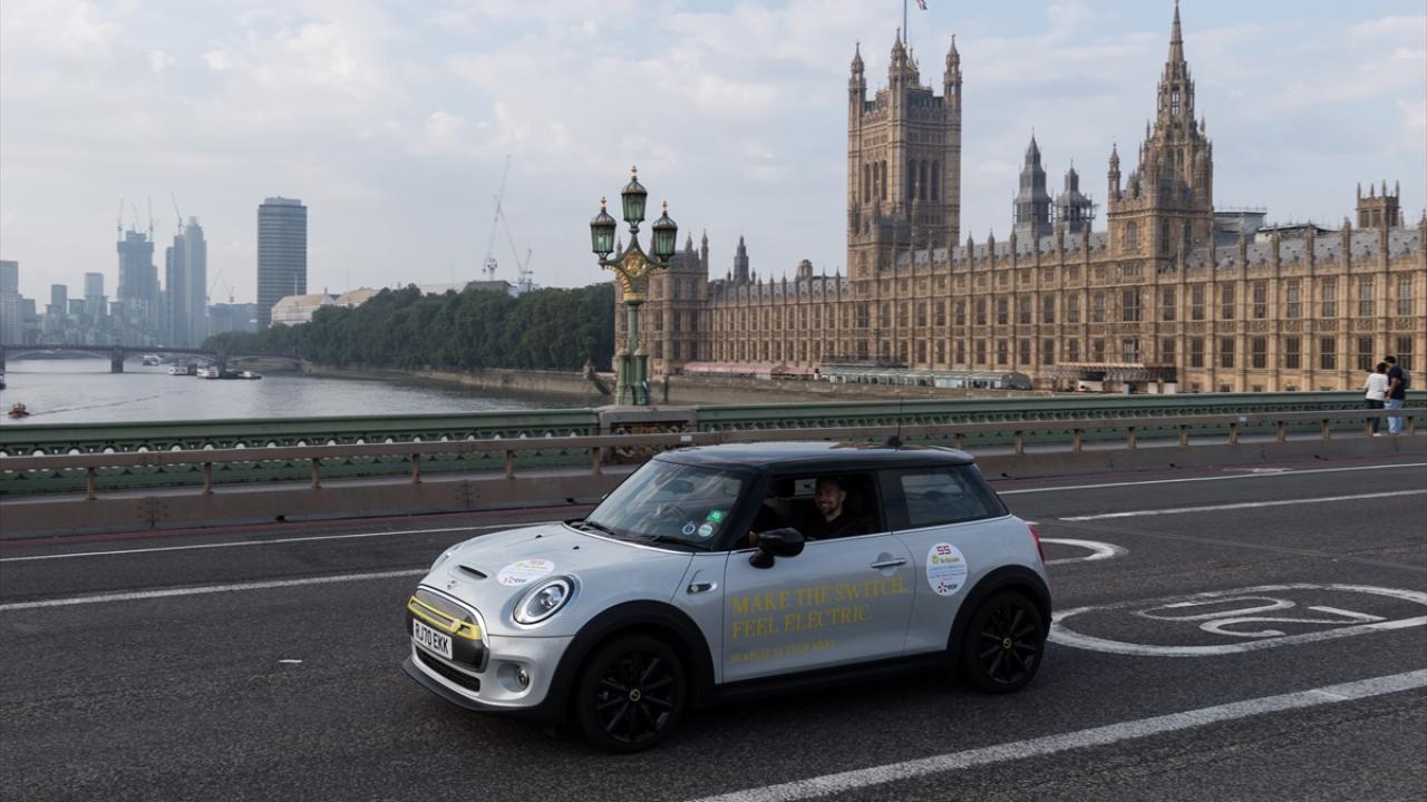 İngiltere'de elektrikli araçların süratli gelişimi ve yenilenebilir enerjiye dikkat çekmek için toplanan göstericiler, Londra'dan Brighton'a konvoy düzenledi.
