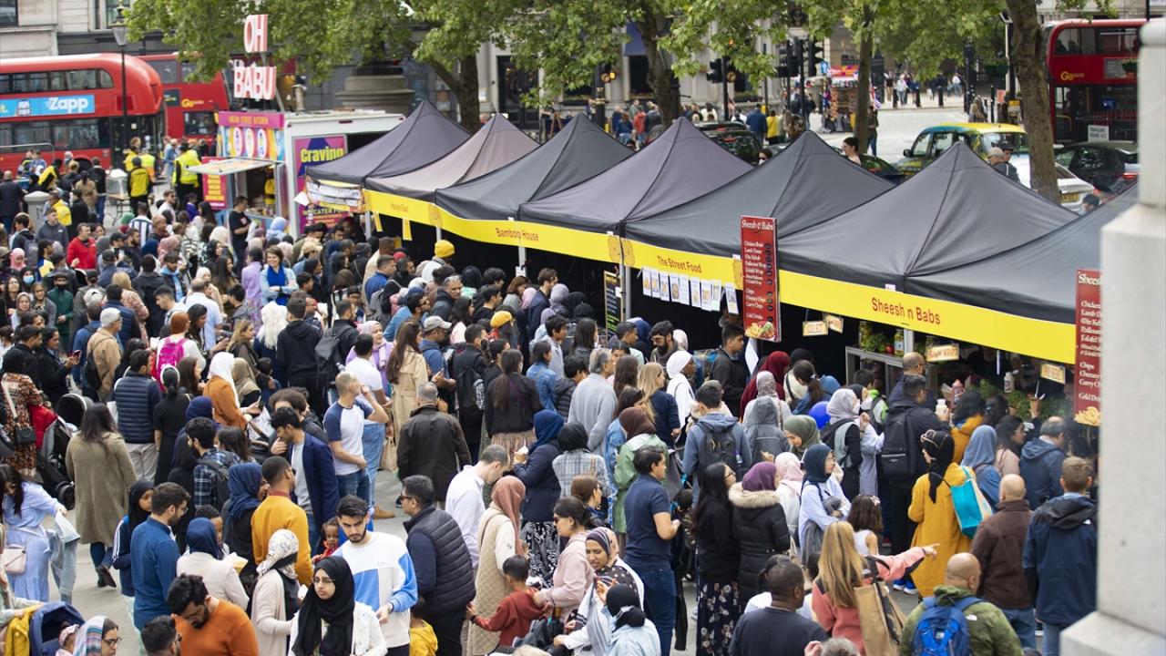 Londra'nın ünlü Trafalgar Meydanı Ramazan Bayramı kutlamasına ev sahipliği yaptı. Yurt dışında resmi tatil olmadığı için kutlama için hafta sonu beklendi. Londra Belediyesi'nin düzenlediği kutlamada binlerce Müslüman bir araya geldi.