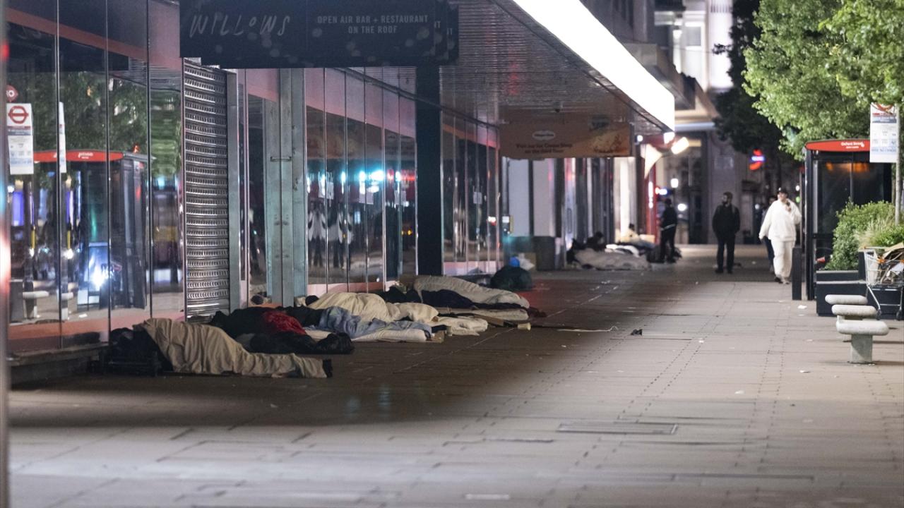AA ekibi, ağustos ayında dahi durmaksızın yağan yağmurlara rağmen gece saat 22.00-23.00 sularında Oxford Street`e gelerek mağazaların önünde uyuyan çok sayıda evsizi görüntüledi.