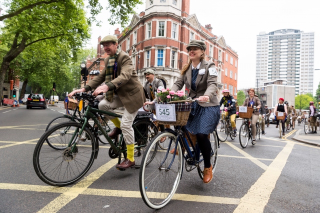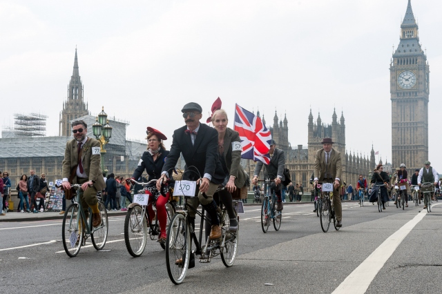 Geleneksel İngiliz modasına göre giyinen yüzlerce bisiklet sürücüsü, "Tweed Run" etkinliği kapsamında İngiltere'nin başkenti Londra'nın caddelerinde pedal çevirdi.