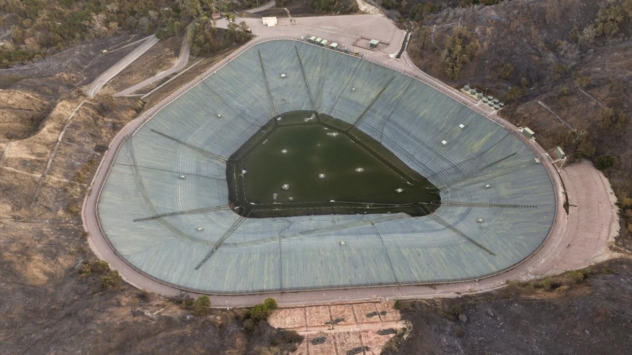 Anadolu Ajansı (AA), ABD'nin California eyaletinin Los Angeles kentinde ve çevresinde devam eden orman yangınlarını söndürme çalışmalarında kullanılması gereken ancak onarım nedeniyle kapalı olan kritik su rezervuarlarını görüntüledi.