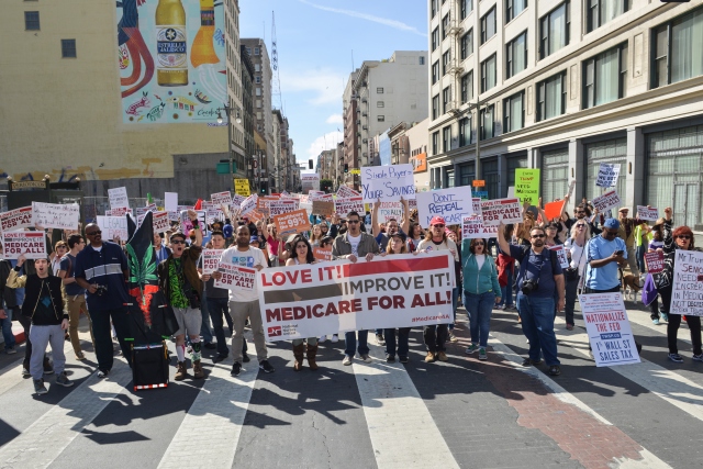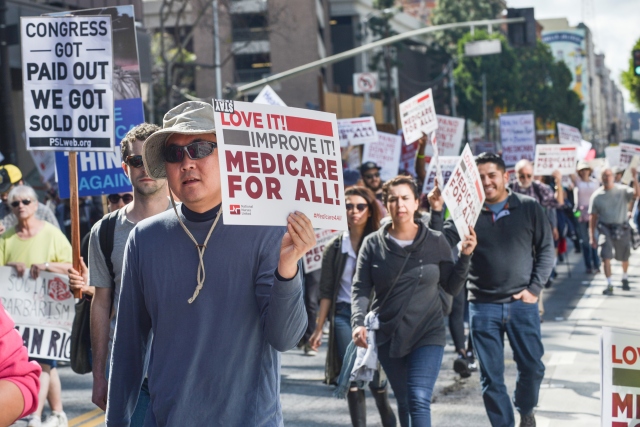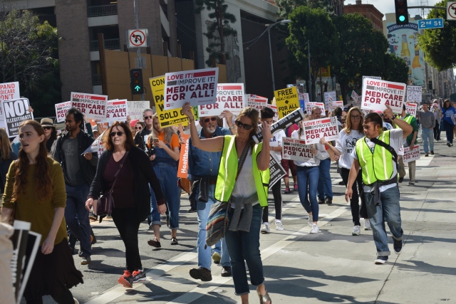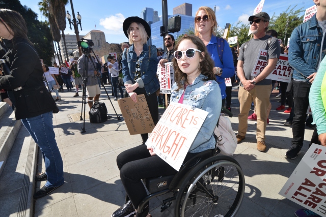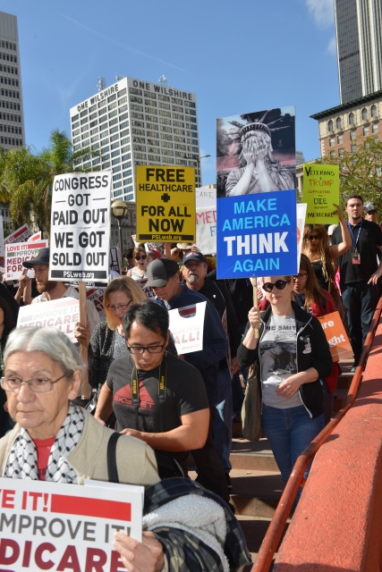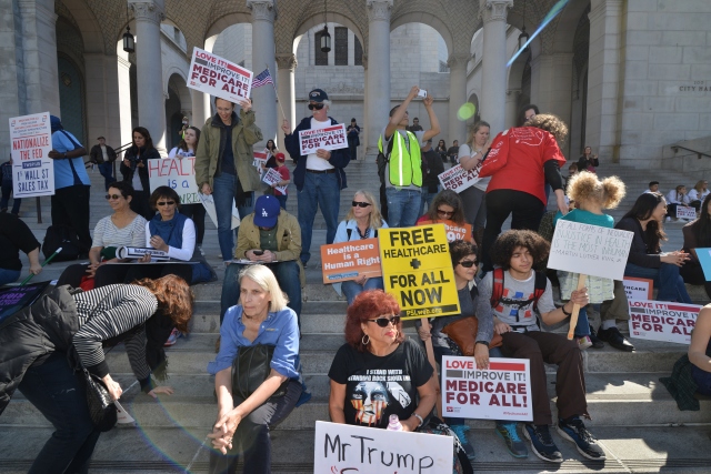 ABD Başkanı Barack Obama'nın ismiyle anılan "Obamacare" sağlık reformunun iptalinin önünü açacak tasarının, Senato ve Temsilciler Meclisi’nde kabul edilmesi Los Angeles'da protesto edildi.