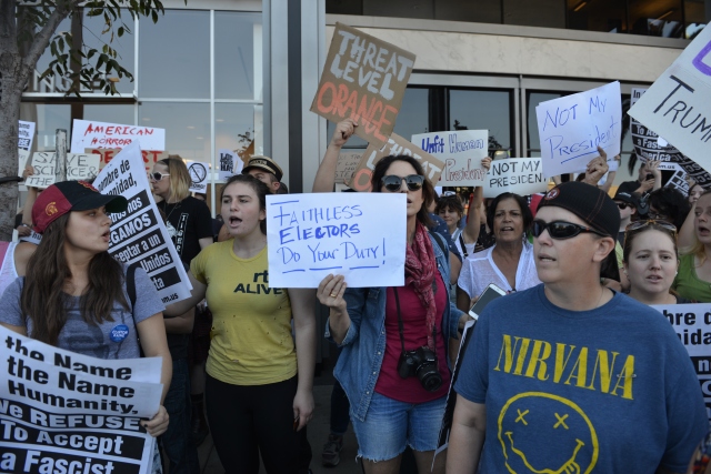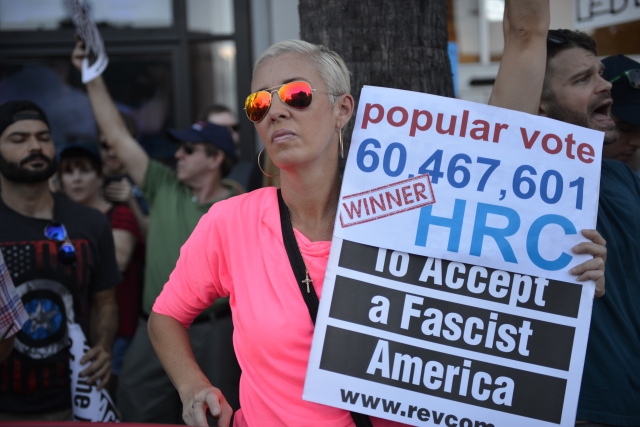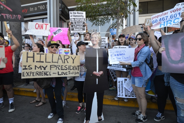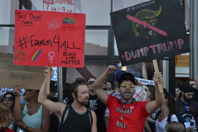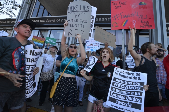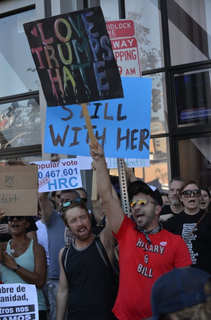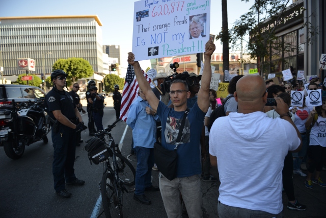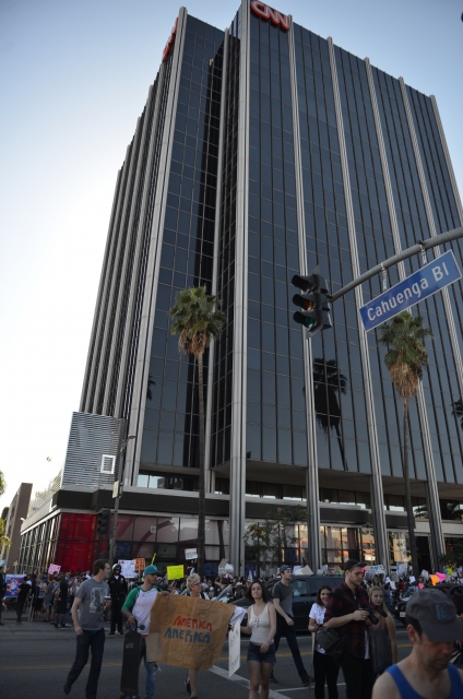 Donald Trump'ın ABD Başkanlığına seçilmesinin ardından Trump karşıtı gösteriler Los Angeles’ta devam ediyor. Los Angeles'taki CNN binasının önünde bir araya protestocular, Trump aleyhine sloganlar atarak ve pankart taşıyarak protesto etti.