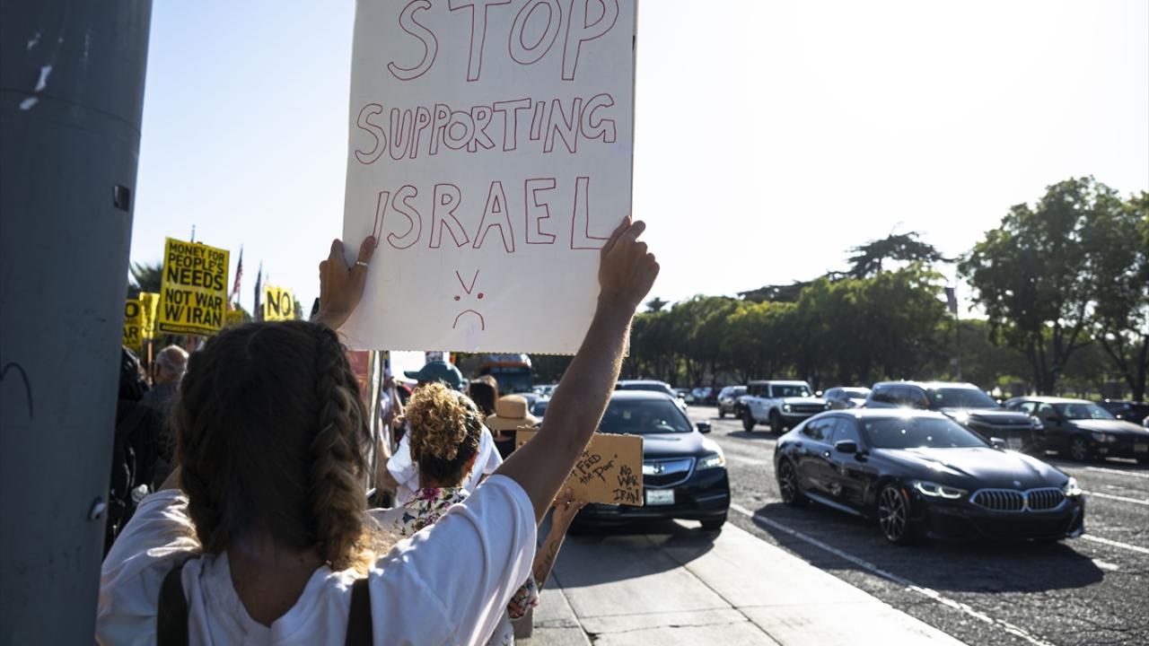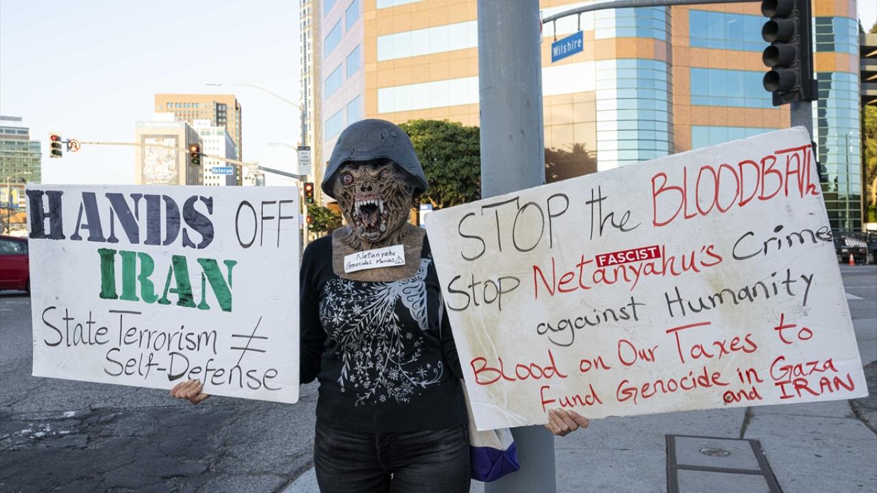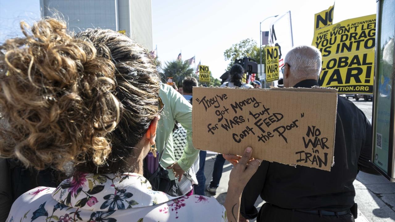 ABD'nin Los Angeles kentinde İran ile İsrail arasında yaşanan gerilimlerin ardından Federal Binası önünde toplanan bir grup gösterici savaşa hayır protestosu düzenledi.